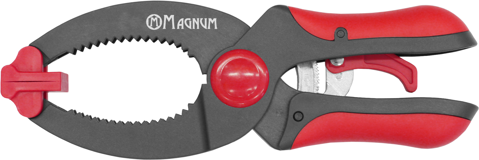 Vahva metallinen räikkämekanismi kevyesti toimivalla vapautuspainikkeella. Runko valmistettu kuituvahvisteisesta nylonista. Kahvoissa pitävät kumiset otepinnat.