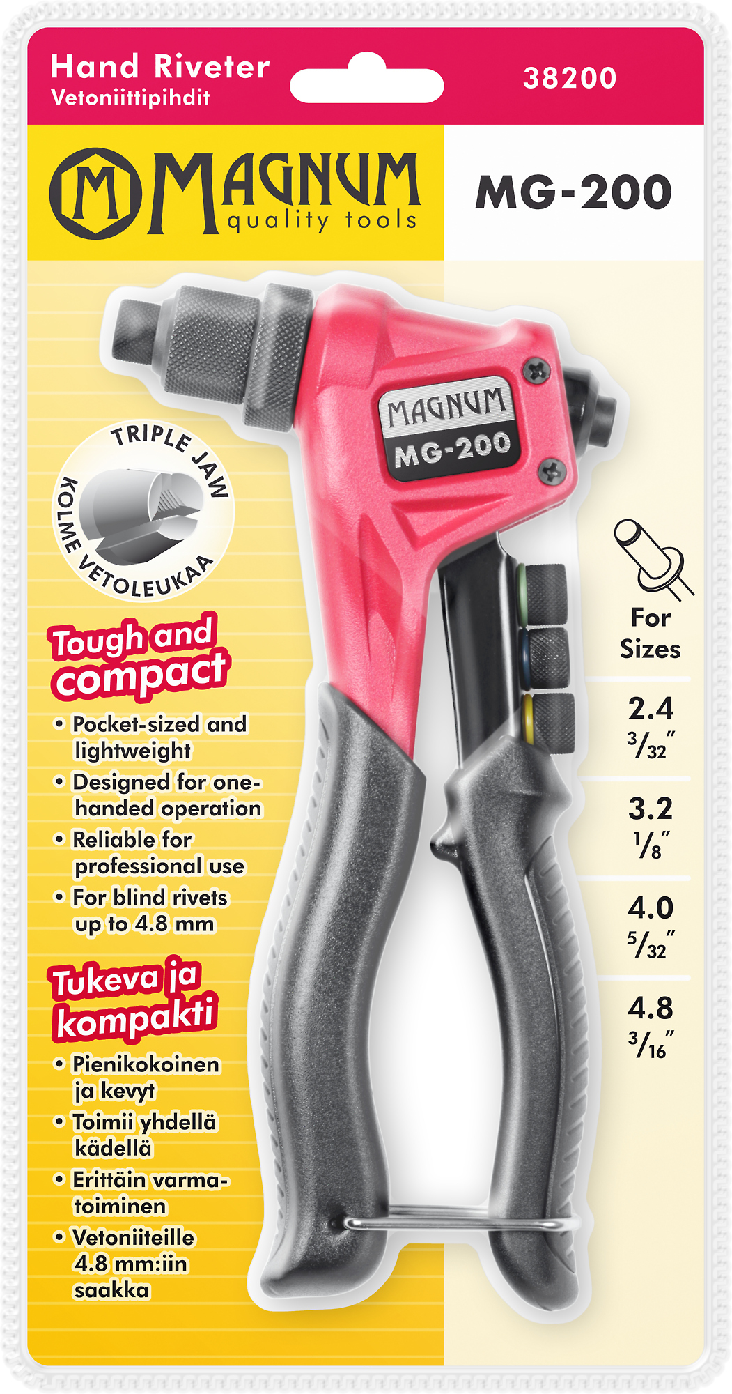 Sopii alumiininiiteille 4,8 mm saakka, suurin suositeltu teräsniitti 4,0 mm.