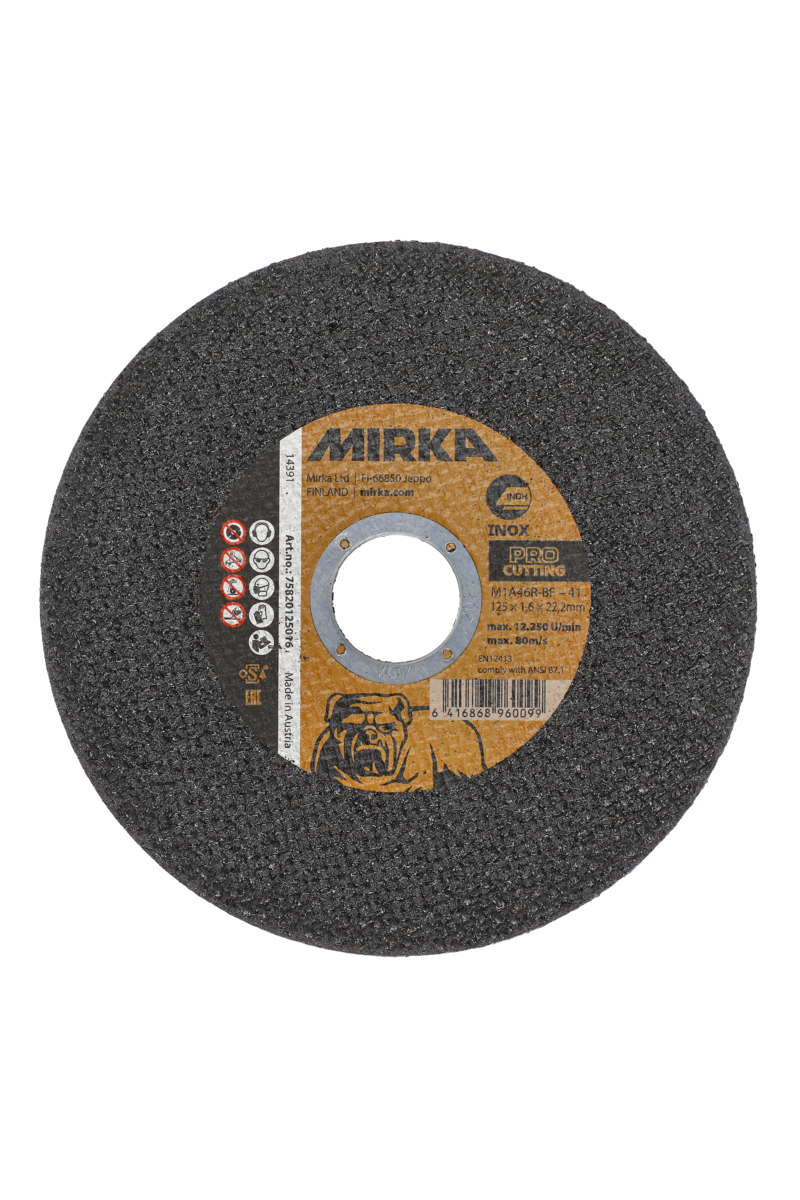 Mirkan korkealaatuinen katkaisulaikka ruostumattoman teräksen (Inox) ja teräksen eri laatujen katkaisuun. Sopii profiilien, putkien, tankojen ja muiden metalliosien katkaisuun. Erinomainen katkaisukyky ja työkappaleen vähempi kuumeneminen takaavat lyhemmän työstöajan. Optimoitu tehokkaille koneille.