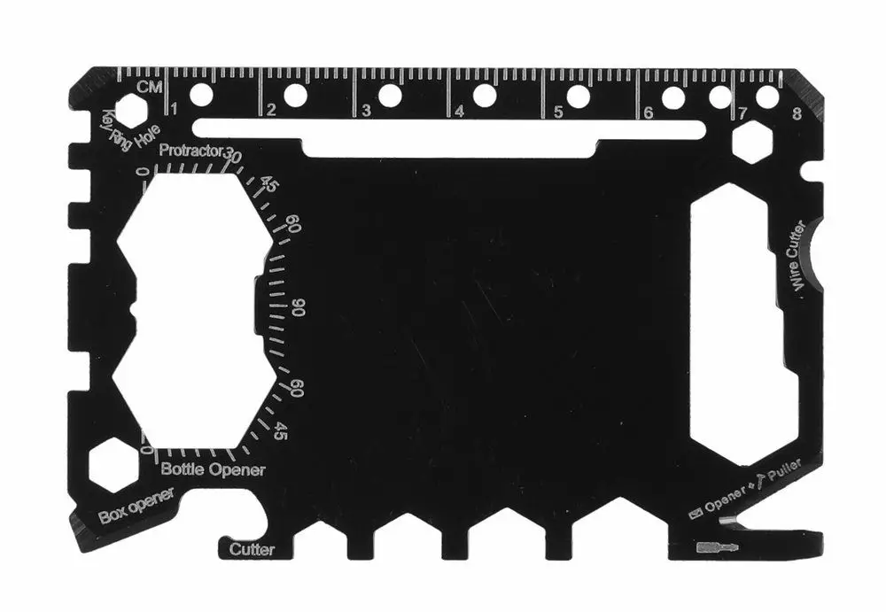 Luottokortin kokoinen monitoimityökalu kulkee helposti mukana ja on saatavilla aina tarpeen tullen. Tuotteessa on 46 erilaista työkalua pienessä paketissa. Ruuvitalttoja, lenkkiavaimia, pulloavaaja, säilykepurkinavaaja, kirjekuorenavaaja, pahvilaatikonavausterä, mitta, johtoleikkuri yms.