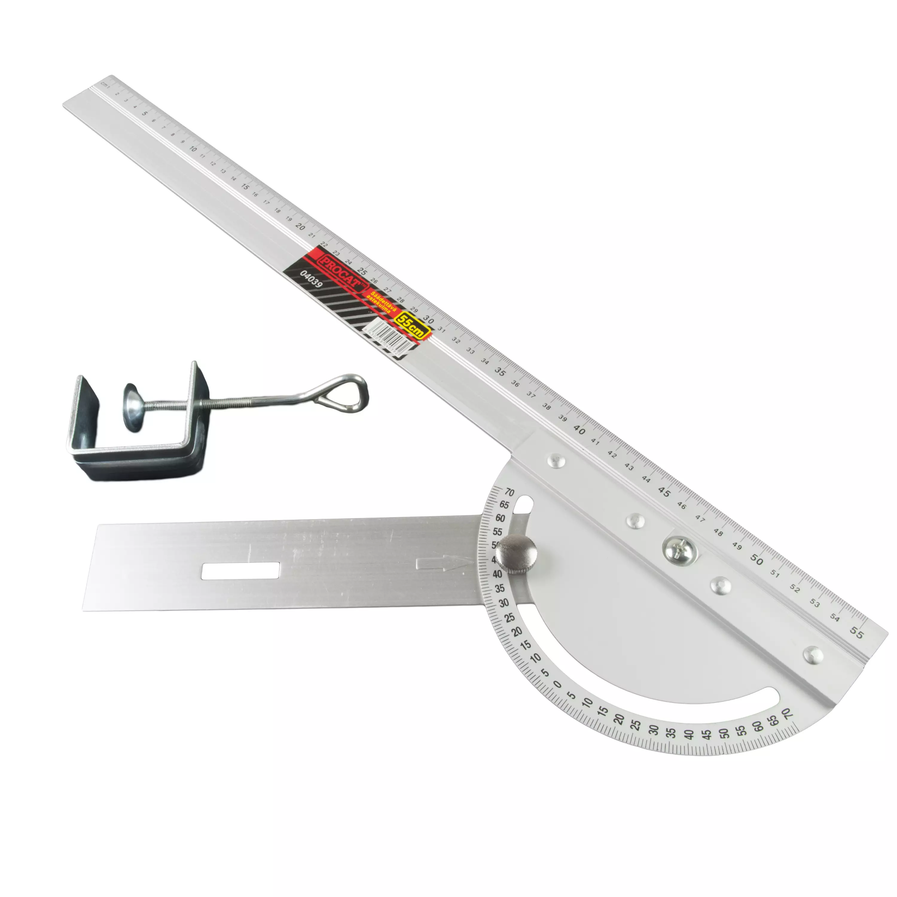 Tämä suuri säädettävä astekulmamitta mahdollistaa eri kulmien mittaamisen sekä merkitsemiseen kappaleisiin. Sen 55 cm pitkän viivaimen ansiosta sitä voidaan käyttää myös käsisirkkeleiden sahausohjurina.