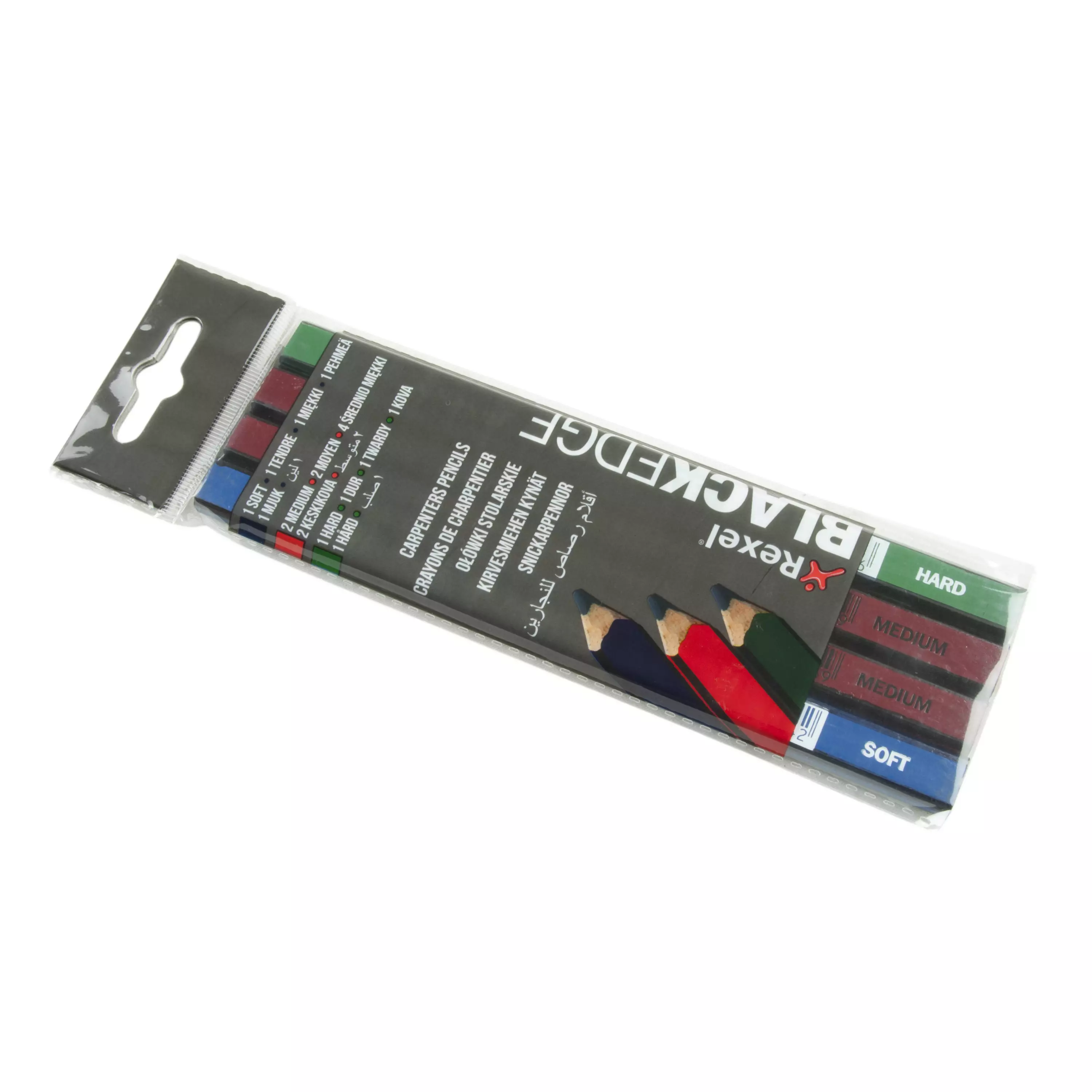 4 osainen pakkaus laadukkaita black edge timpurinkyniä. Pakkauksessa 2 x medium, 1 x hard ja 1 x soft kyniä.