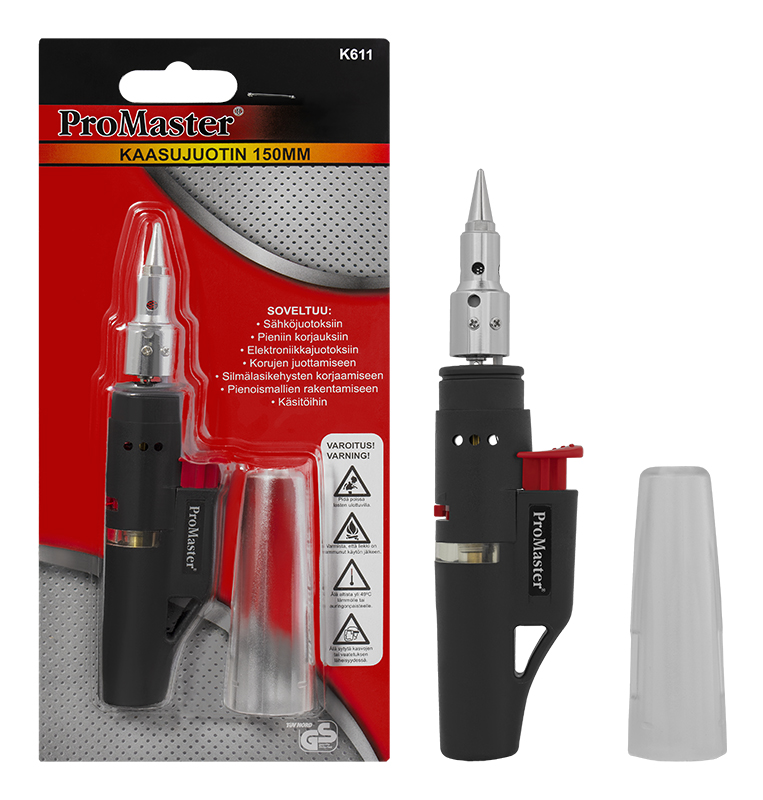 ProMaster -kompakti kaasujuotin -mitat 149 x 35 x 20mm -paino 54 g (80% täytetty säiliö) -kaasusäiliön tilavuus: 6 mm (uudelleen täytettävä) -butaani-kaasu toiminen (ei sis. toimitukseen)... Lue lisää
