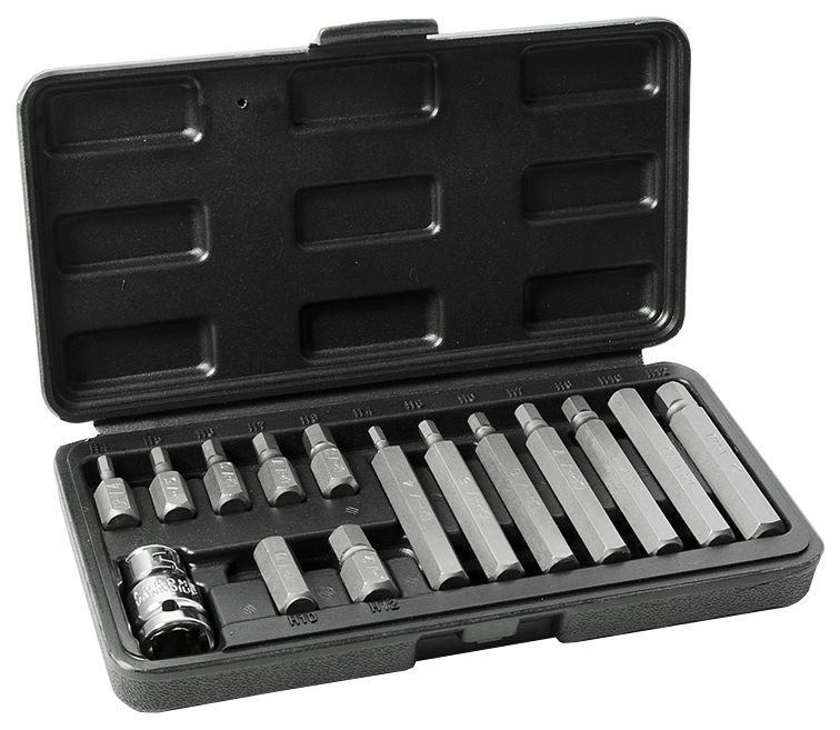 ProMaster -kromivanadium -terästä -15-osainen sarja sisältää --7 kpl 3/8" 75 mm kuusiokärkiä: H4, H5, H6, H7, H8, H10, H12 --7 kpl 3/8" 30 mm kuusiokärkiä: H4, H5, H6, H7, H8, H10, H12 --1... Lue lisää