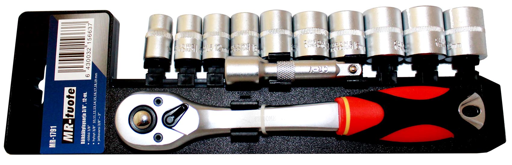 - Hylsyt: 10, 11, 12, 13, 14, 15, 16, 17, 18 ja 19 mm