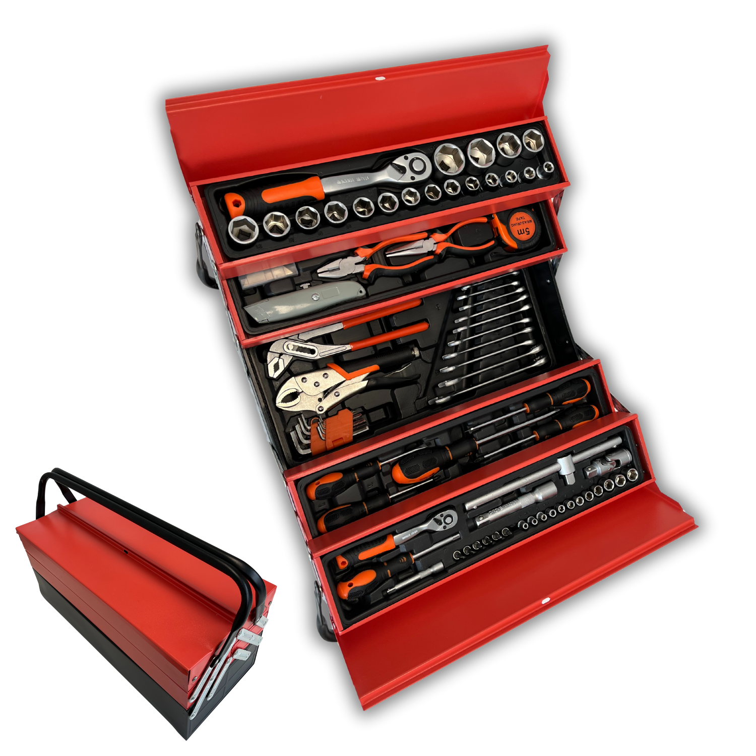 85- osainen erittäin monipuolinen jokamiehen työkalusarja metallipakissa. Työkalusarja on suunniteltu kattamaan kaikki peruskorjausten ja -kunnossapidon tarpeet. Sarja sisältää laadukkaat hylsysarjat, käsityökalut ja erikoistyökalut, jotka takaavat, että olet valmistautunut kohtaamaan mitä tahansa korjaustehtävää.