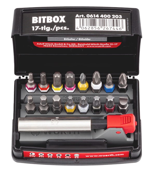 Laaja valikoima RW-, PH-, PZ-, TX-, kuusiokolo- ja suoraurakärkiä vaihdettavissa kärkikammoissa, sisältää myös kärjenpitimen. Saatavana ORSY® -järjestelmään sopivassa kärkirasiassa.