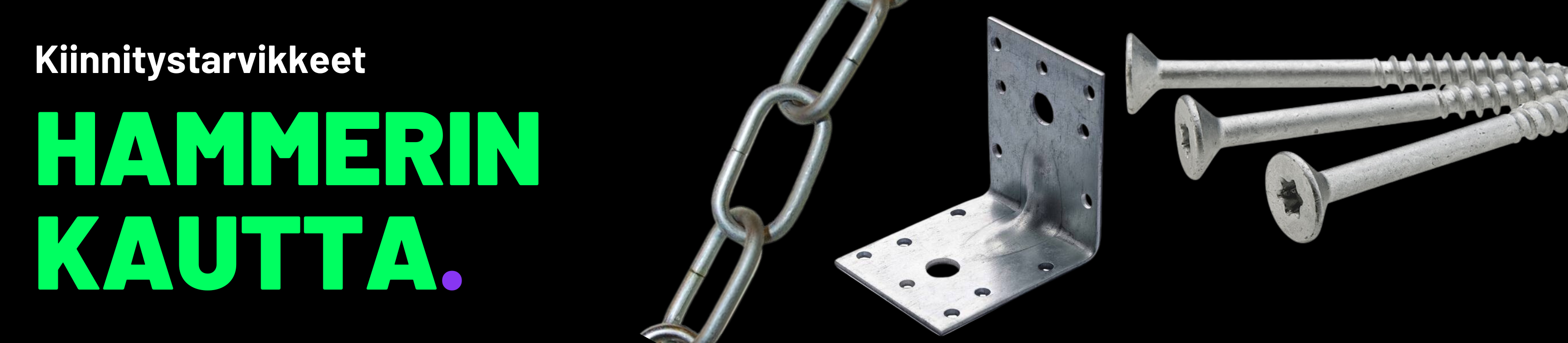 Hammerista löydät laadukkaat kiinnitystarvikkeet erittäin laajasta valikoimasta niin rakennustyömaille kuin kodin pieniin remontteihin ja sisustustöihin. Runsaasta ja edullisesta valikoimastamme löydät mm. proput, ruuvit, pultit, kulmaraudat, palkkikengät, pilarikengät, ja monenlaiset kiinnikkeet kaikenlaisiin remonttitöihin. Meiltä ruuvit, pultit ja kiinnitystarvikkeita myös kilotavarana laaja valikoima- osta sen verran kuin tarvitset.