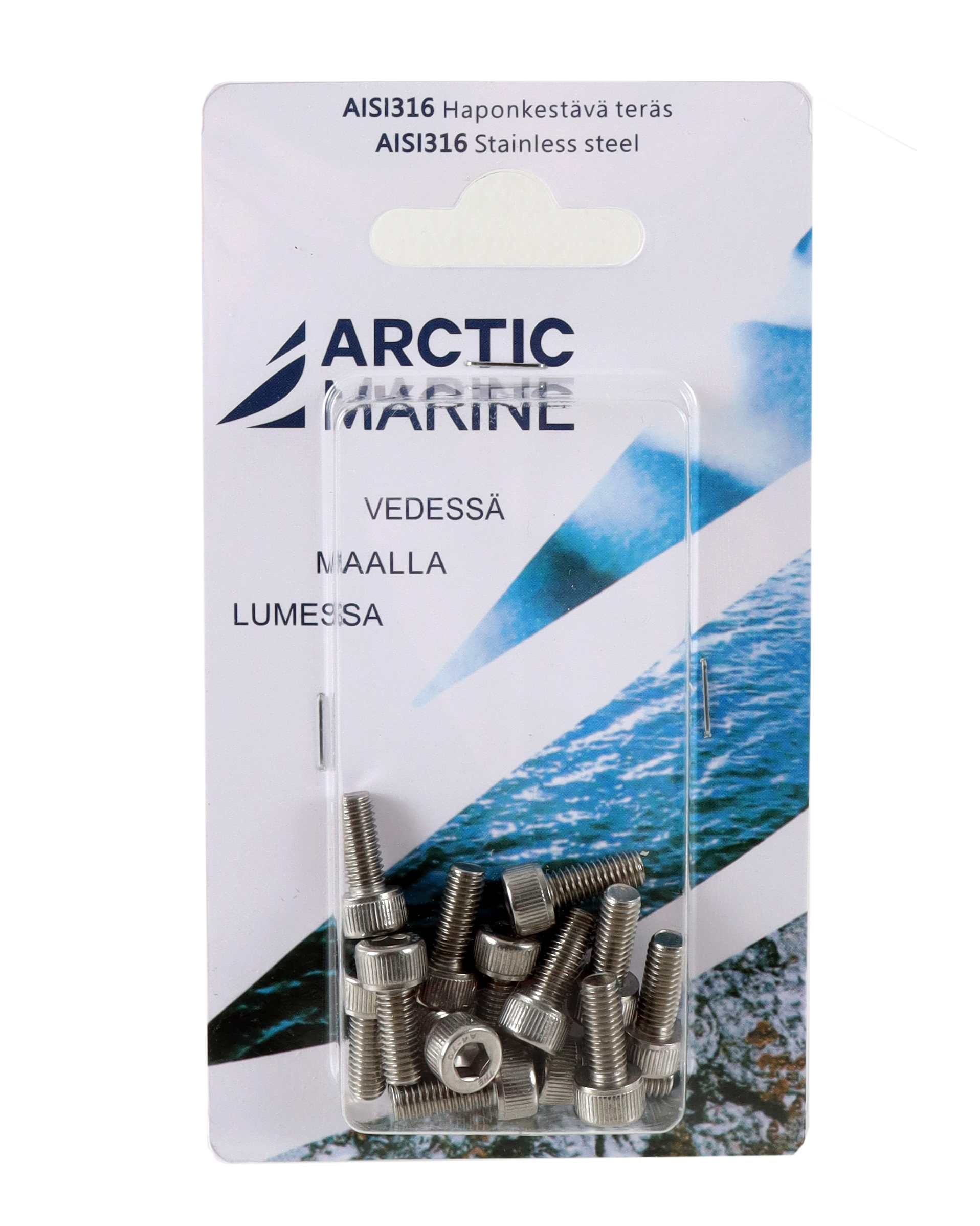 Kuusiokoloruuvi DIN912 M5x12mm. Haponkestävää terästä, 14 kpl, meriveden kestävä AISI 316.
