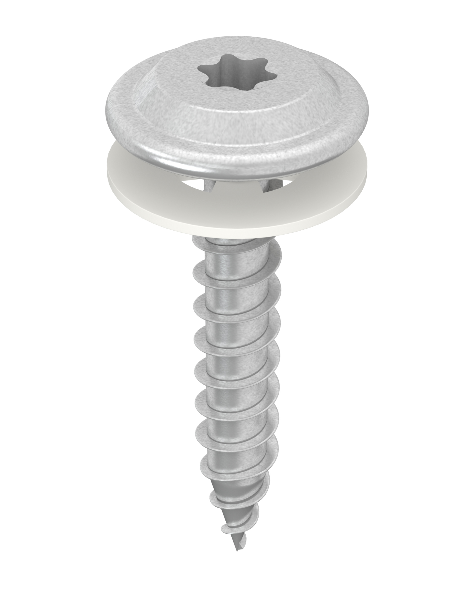 Matalakantainen Kingi® lukkosaumaruuvi 4,5 x 25 Torx T20 on suunniteltu lukkosaumapeltien kiinnittämiseen. Ruuveissa on 0,5 mm paksu Teflon-liukuprikka, joka vähentää lämpöelämisen aiheuttamaa paukkumista ja kupruilua. Tämä on erityisen tärkeää, kun sääolosuhteet vaihtelevat ja teräskate mukautuu ulkolämpötilan muutoksiin. Teflonin (PTFE) kitkakerroin on kolmanneksi pienin kaikista tunnetuista materiaaleista.