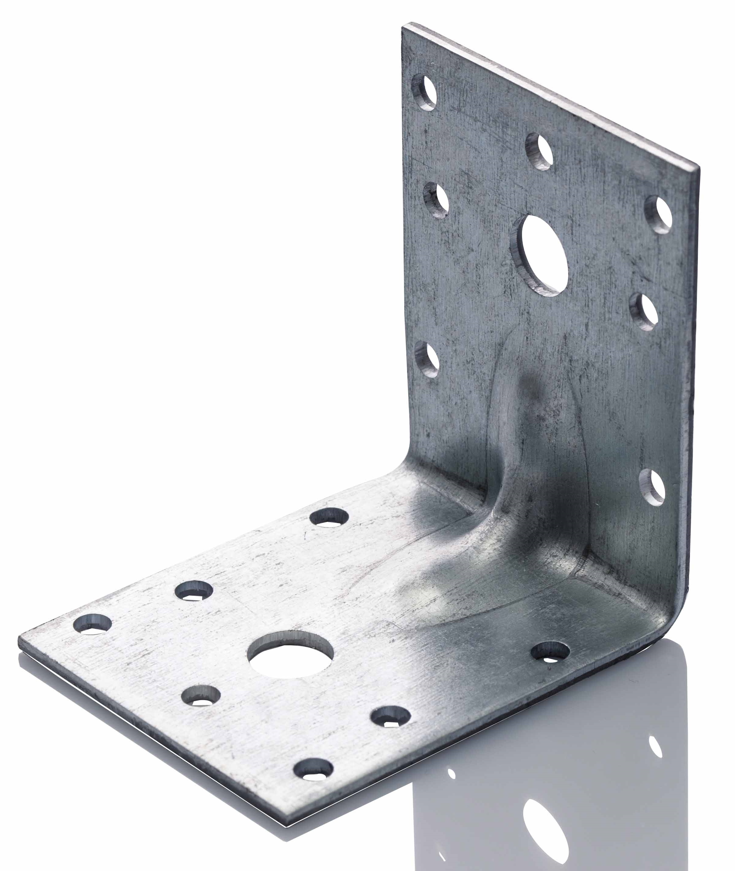 Kuumasinkitystä teräksestä valmistettu kulmakiinnike puurakenneosien kiinnittämiseen ja liittämiseen.