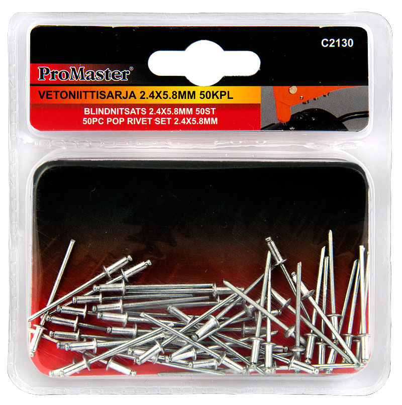 ProMaster -koko 3.2 x 7.4 mm -pakkauksessa 50 kpl vetoniittejä -IP-ripustinpakkaus pop-niitti, pop-niitit