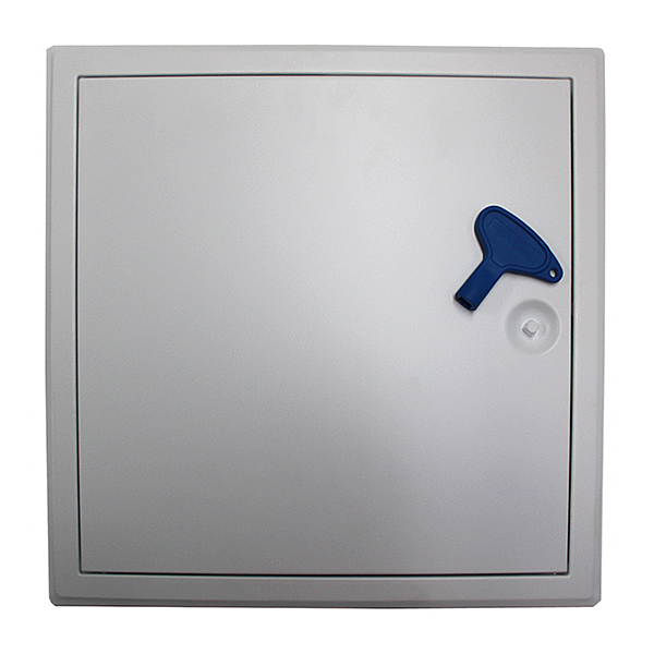 Tarkastusluukku, valkoiseksi pulverimaalattu. RAL 9010. Varustettu avaimella ja lukolla. Soveltuu sisäseinä- ja kattoasennukseen.