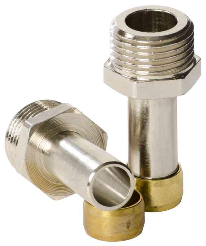 Välinippa sekoittimen letkun (3/8 sisäkierre) ja 10 mm:n puserrusliittimen väliin. Sarjaan sisältyy 2 kpl liitäntänippoja ja 2 kpl 10 mm:n puserrushelmiä.