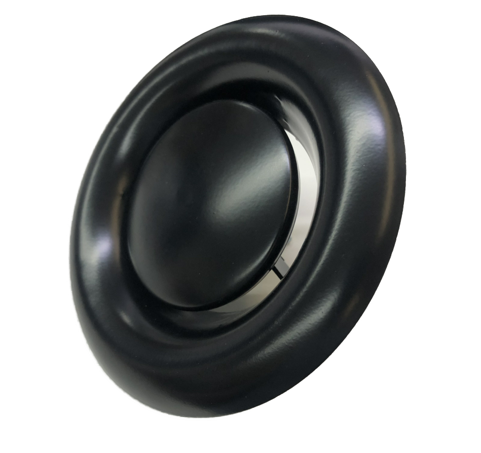 Puunupilla varustettu poistoilmaventtiili saunatiloihin. Sopii 100 mm kanavaan