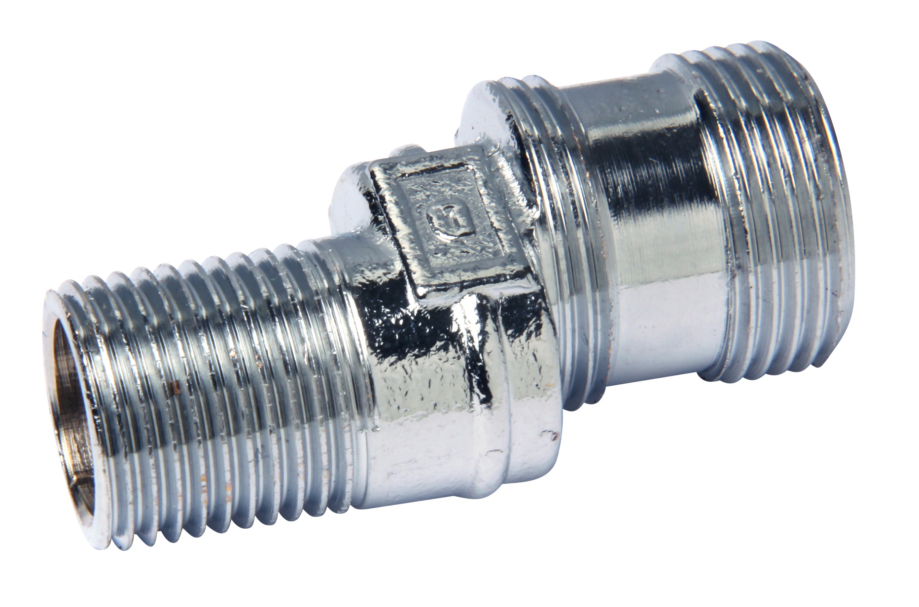 Epäkeskoliitin 1/2x3/4x10mm, erikoismessinki kromi, pakkauksessa 2kpl