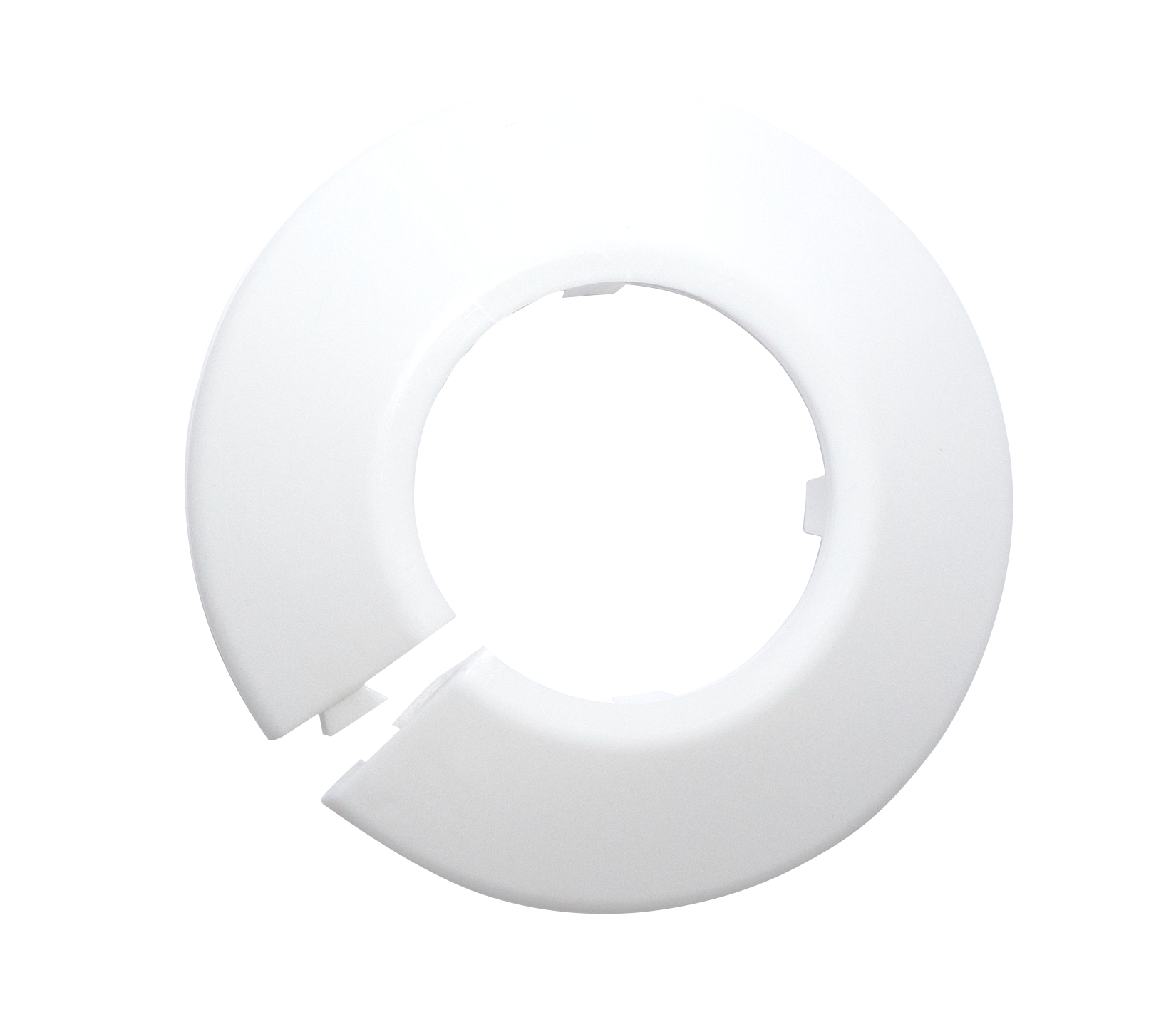 Peitelevy putken läpiviennin viimeistelemiseksi, valkoista muovia.