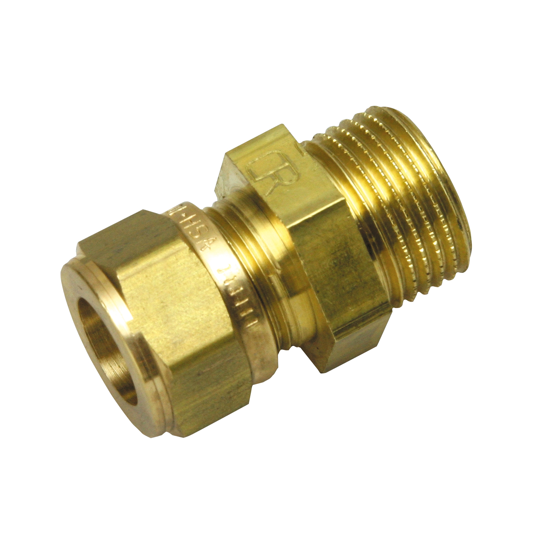 Puserrusliitin, materiaali: erikoismessinki, koko: 15 mm x 3/8", ulkokierre. Tyyppihyväksytty.