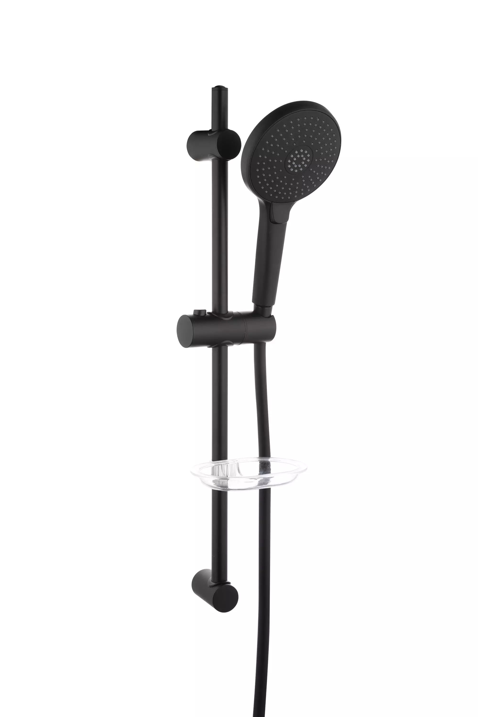 OPAL suihkusetissä pakkauksessa on suihkutanko, käsisuihku, suihkuletku ja saippuateline. Kaikki suihkusetin osat ovat mattamustia paitsi saippuateline, joka on valkoista muovia. Tanko on 60 cm... Lue lisää