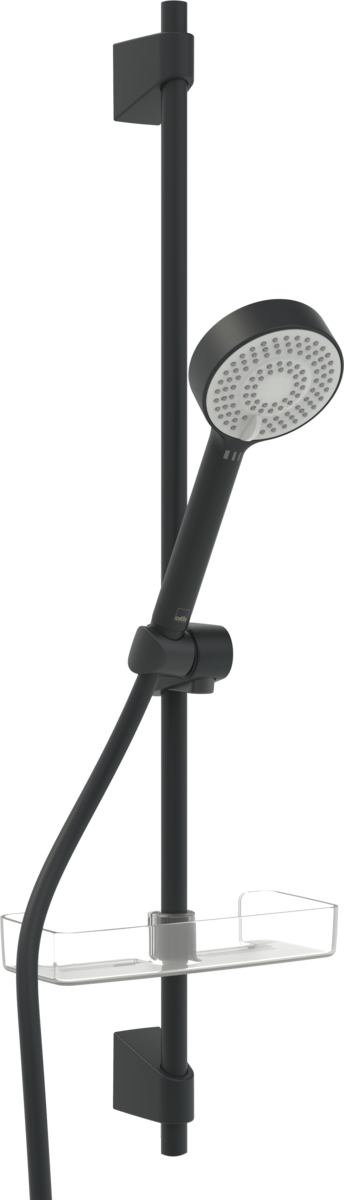 Suihkusetti, joka sisältää käsisuihkun (ø95 mm), säädettävän suihkutangon (max. 720 mm), suihkuletkun (1750 mm) ja saippuatelineen. Käsisuihkussa kolme säätövaihtoehtoa, joista yksi on vettä säästävä EcoFlow. Mattamusta.