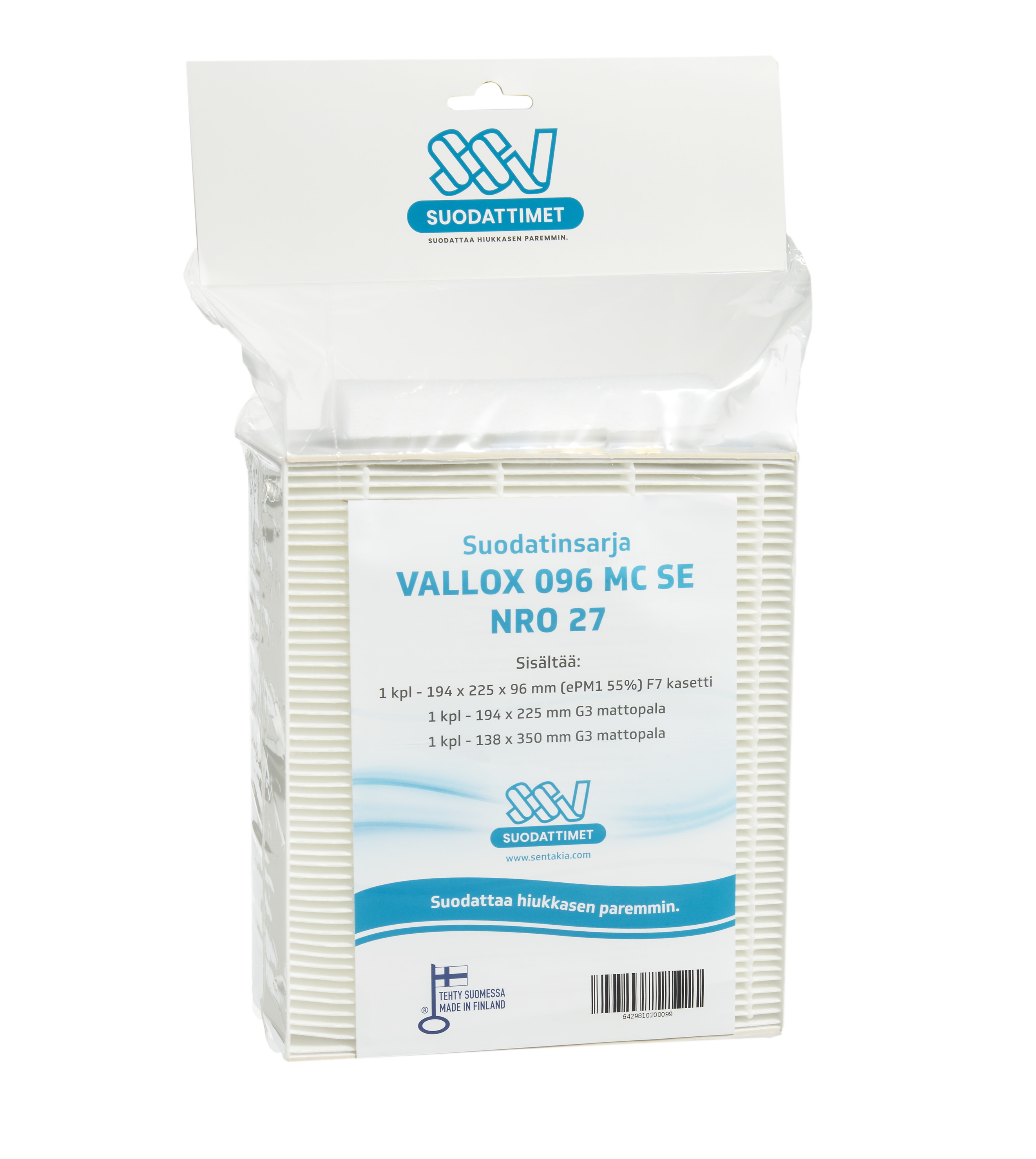 Avainlipulla varustetut kotimaiset suodattimet ovat testattu ja valmistettu uuden ISO 16890 -standardin mukaan. Suodattimet ovat tarkoitettu käytettäväksi pientaloissa, kuten omakotitaloissa, rivitaloissa sekä kerrostaloissa. Ilmanvaihto pysyy kunnossa ja talon sisäilma raikkaana, kun vaihdat suodattimet 1-2 kertaa vuodessa.