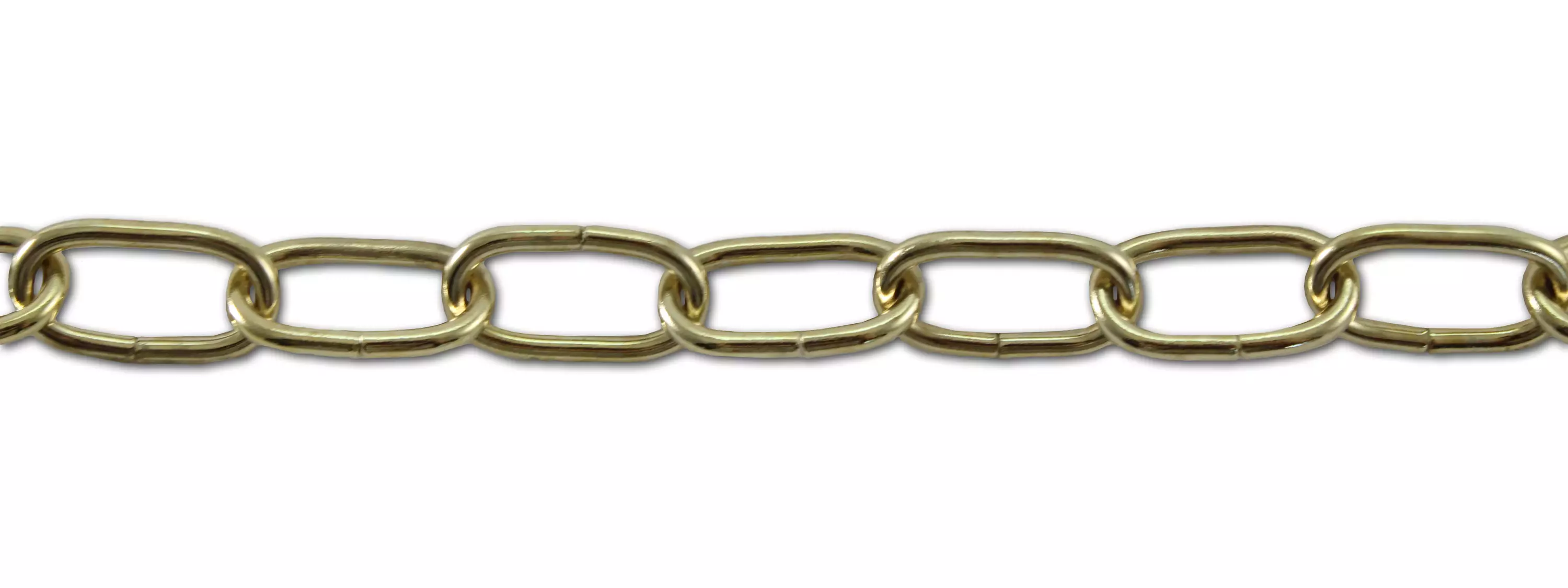 Koristeketju 2x5x10mm, pituus 2,5 metriä, väri messinki