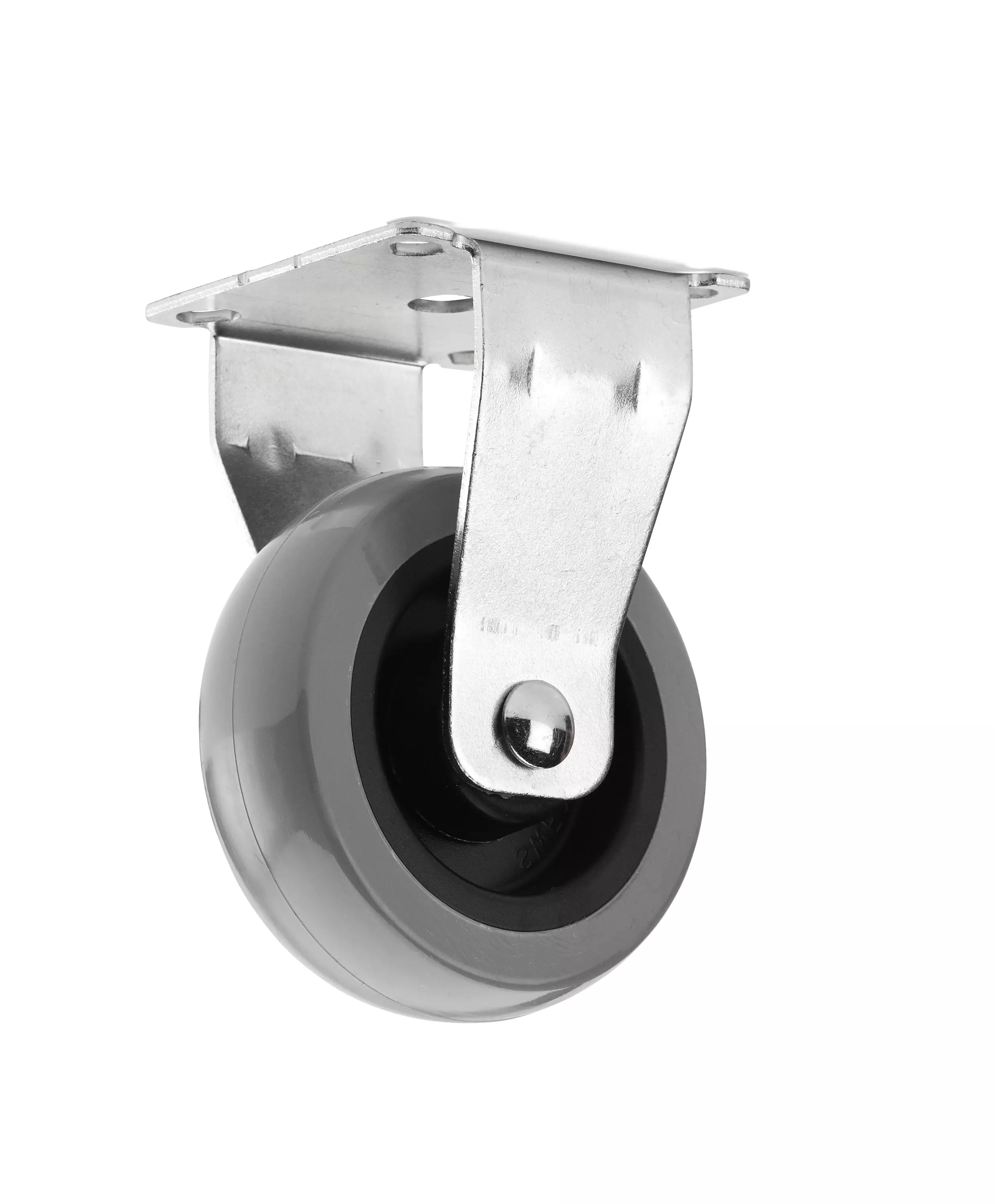 Kiinteä kalustepyörä ø 100 mm polyuretaanista teräslevyllä 60x60 mm. Maksimipainoraja/pyörä 55 kg on laskennallinen. Vaunupyörä
