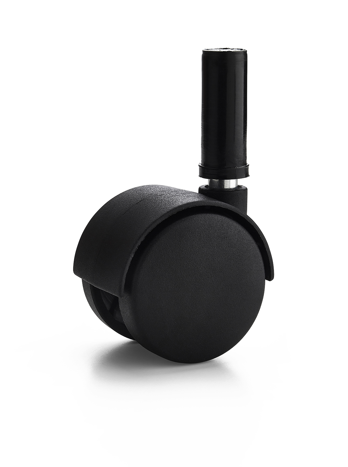 Musta kalustepyörä nailonia, teräskiinnitystapilla. Maksimipainoraja/pyörä 30 kg on laskennallinen. Pakkauksessa on neljä pyörää. Vaunupyörä