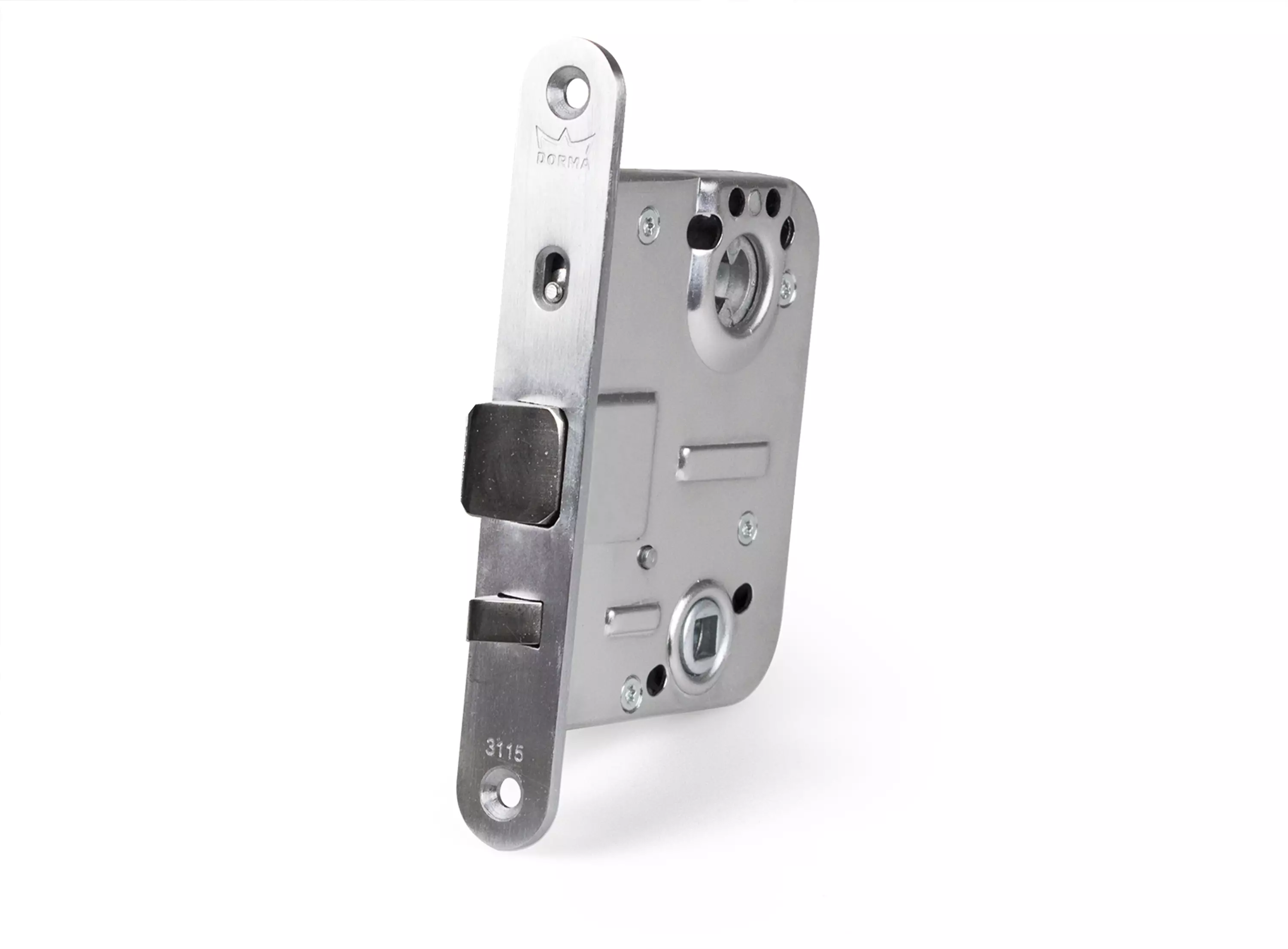 Mattakrominen lukkorunko ulko-oveen standardin EN12209:2003 mukaan vasenkätiseen oveen.