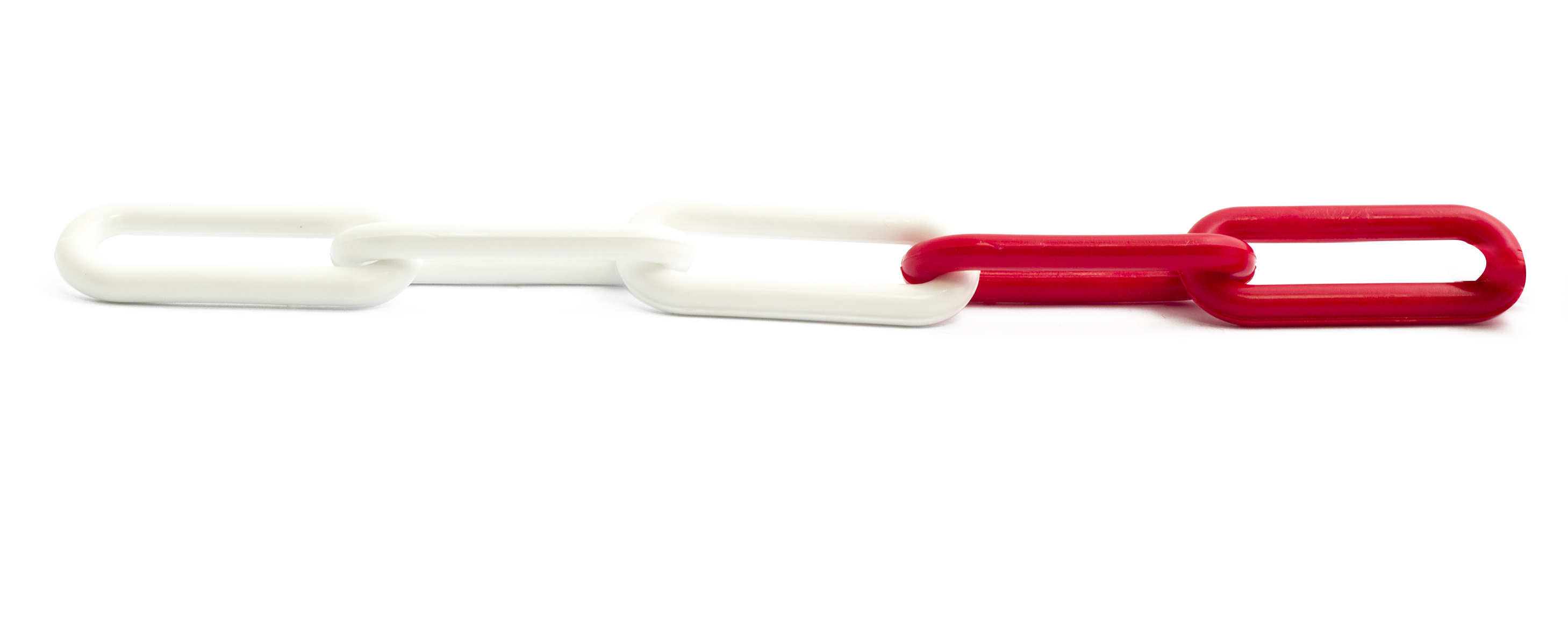 Punavalkoinen muoviketju, pituus viisi metriä.