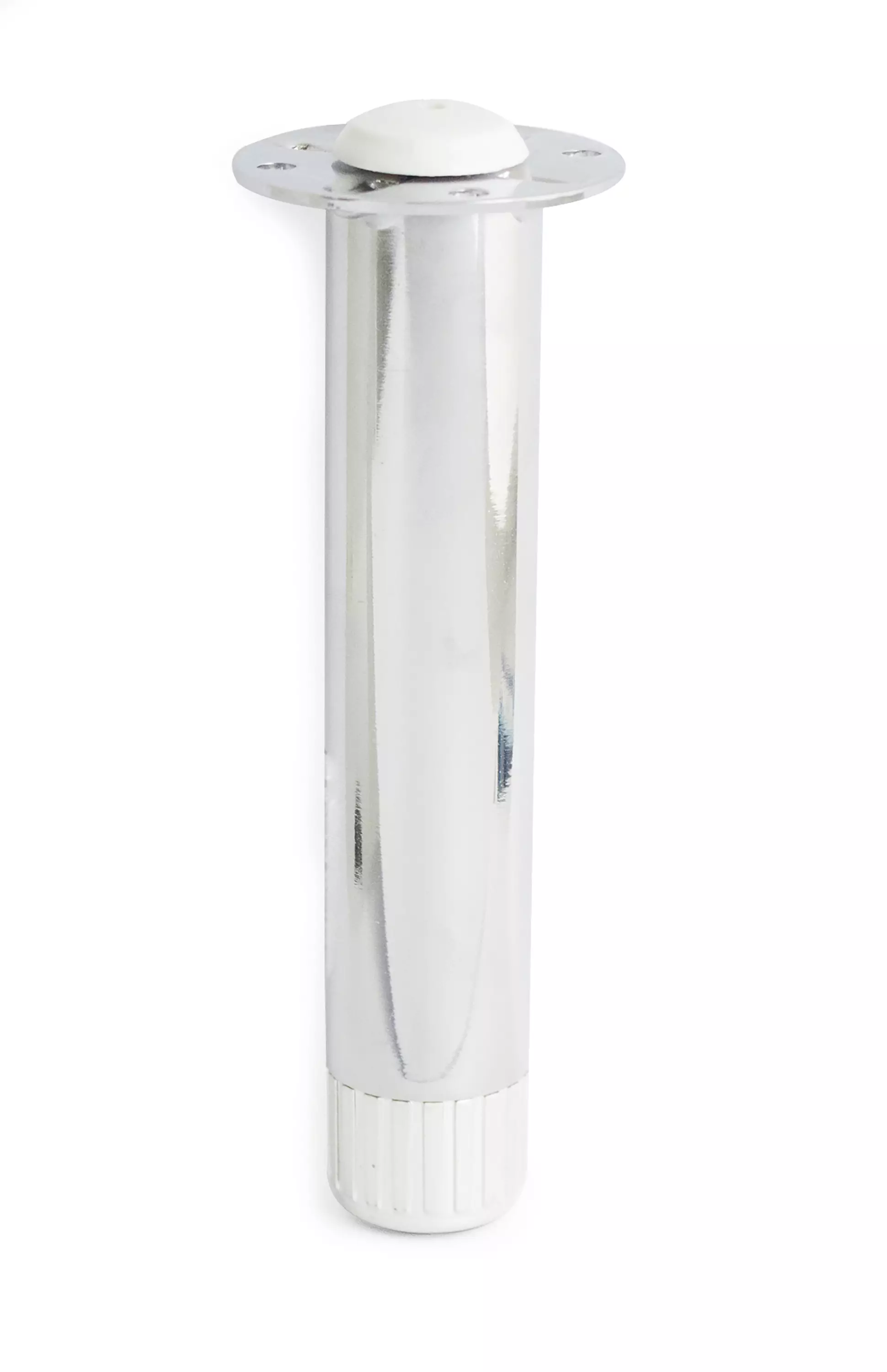 Pöydän jalka kromattua terästä, pyöreä profiili, ø 28 mm. Korkeus säädettävissä 145–175 mm epätasaisen alustan kompensoimiseksi.