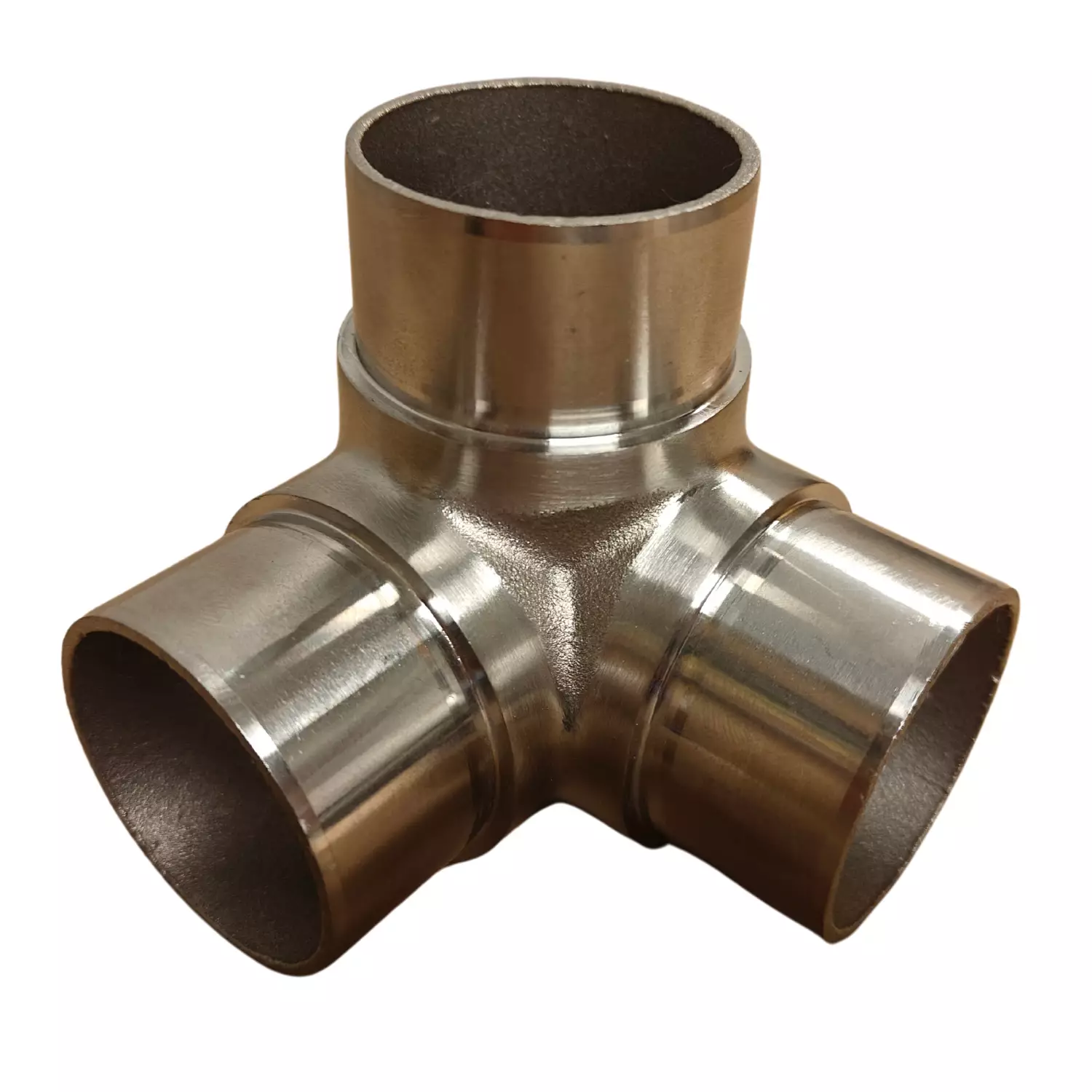 Kevyesti harjattu ruostumattomasta teräksestä valmistettu kulmakappale RST-putken väliin, sopii putkeen jonka ulkohalkaisija 42,4mm.