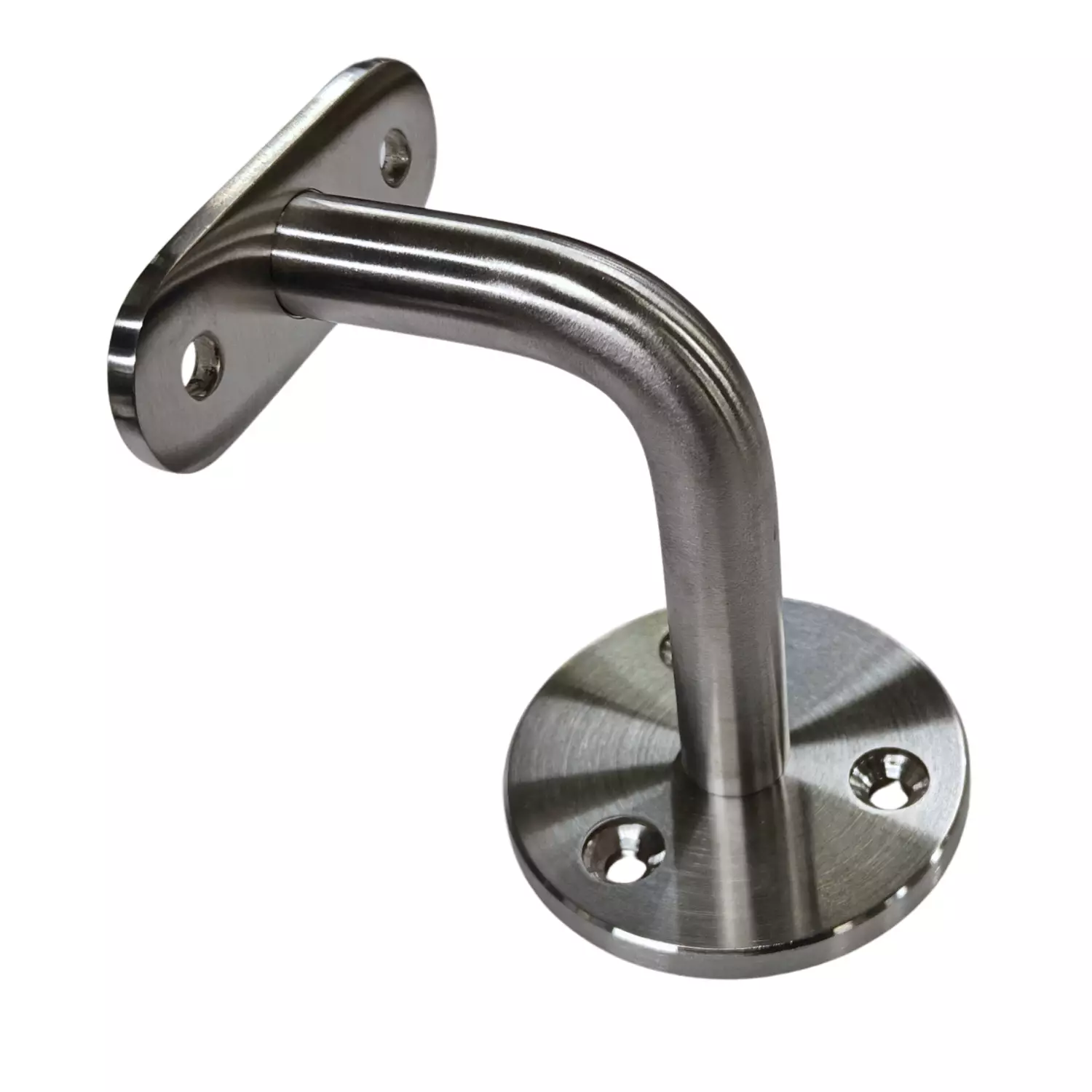 Kevyesti harjatusta ruostumattomasta teräksestä valmistettu kaiteenkannatin, kiinnitysreiät viidessä kohdassa joista kaksi käsijohteeseen. Kiinnitysalustan halkaisija 60mm Etäisyys seinästä... Lue lisää
