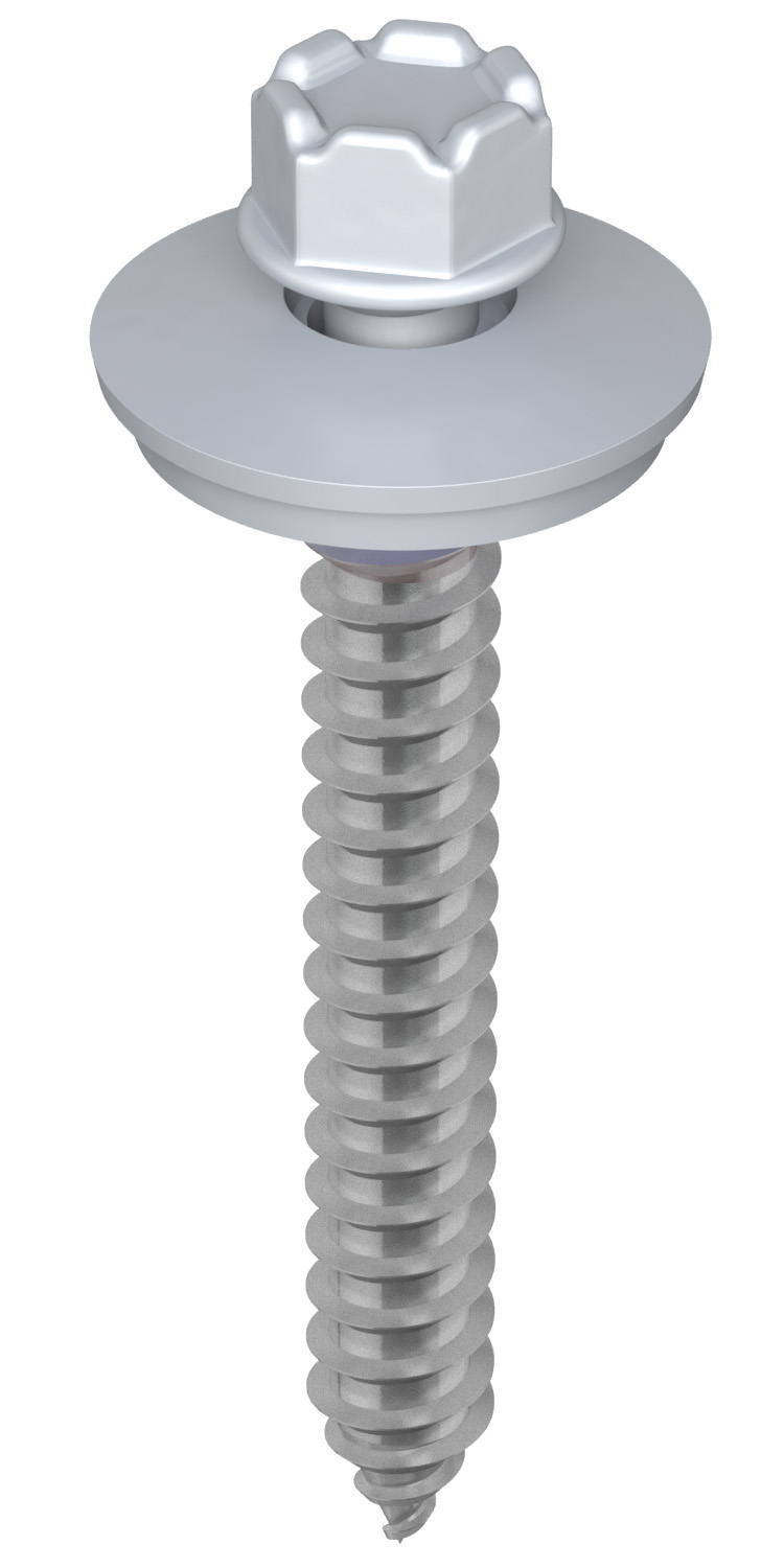 Tämä 50 mm pitkä vaihtoruuvi on tarkoitettu pellin kiinnittämiseen korkeintaan 25 mm korkean profiilin päältä.