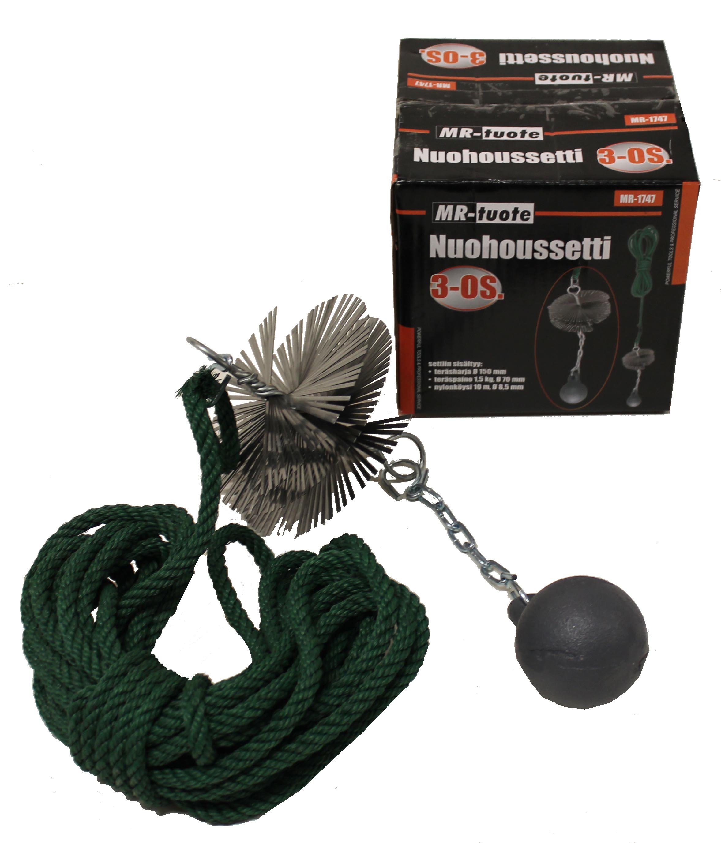 Perinteinen ja kätevä nuohoojan nuohoussetti hormien puhdistamiseen ja kunnossapitoon. Erityisesti tiilihormien nuohoamiseen soveltuvassa kolmiosaisessa nuohoussetissä on teräskuituinen 150 mm harja, 1,5 kg paino ja 10 metrin pituinen nuohousköysi. Hormin säännöllinen puhdistaminen ja huoltaminen varmistaa tulisijan toimivuuden, jolla on vaikutuksia muun muassa lämmityksen tehokkuuteen sekä energiatehokkuuteen.