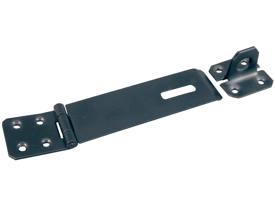 Musta nivelsalpa 150 x 32, musta, Mahdollistaa kannellisten laatikoiden tai arkkujen lukitsemisen esimerkiksi riippulukolla