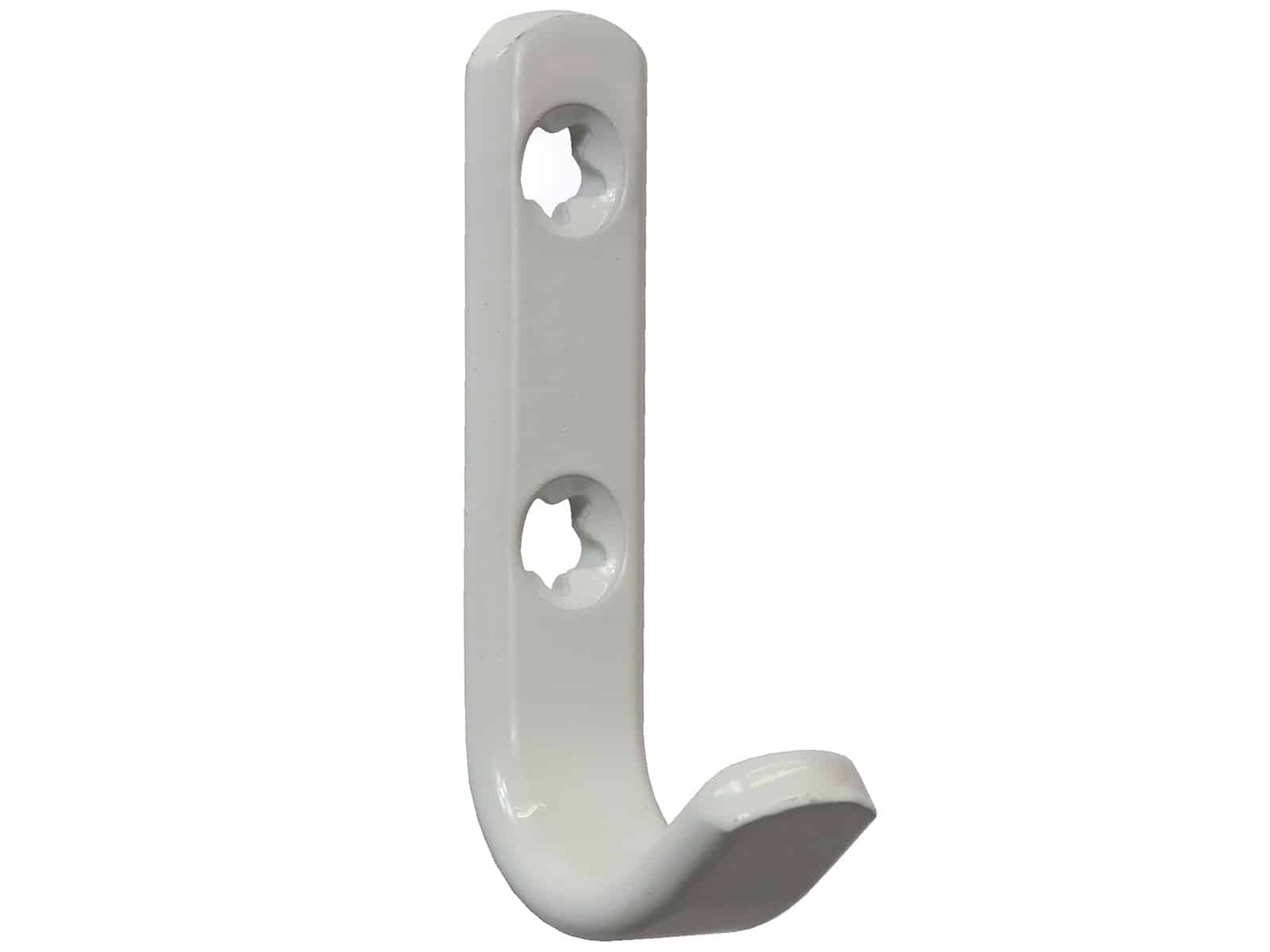 Tukeva vaatekoukku valkoisen väriseksi käsiteltyä terästä, Kiinnitys kahdella ruuvilla (sis, pakkaukseen)