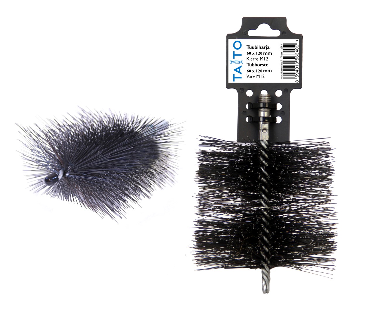 Teräsputkien ja öljykattiloidenkattiloiden nuohoamiseen tarkoitettu tuubiharja.
