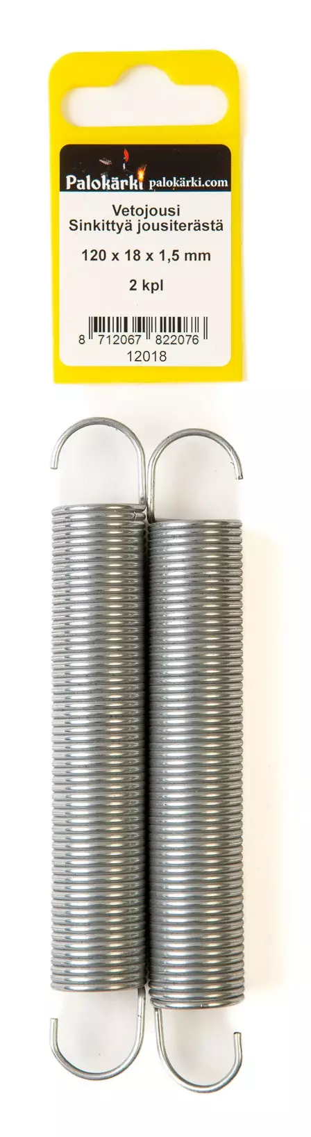 Jousiteräksestä valmistettu vetojousi on erinomainen valinta ammatti- ja harrastekohteisiin. Jousiteräksestä valmistettulla jousella on erinomainen jousivoima, tarkkuus ja palautuksen kesto. Kuormitettavuus on huippuluokkaa. Jousiteräksestä valmistettu jousi on vahva ja jämäkkä. Pituus 120 mm. Ulkohalkaisija 18 mm. Langan paksuus 1,5 mm. Materiaali sinkittyä jousiterästä. Kierrosmäärä 59. Voima 0,2 Kg/cm.