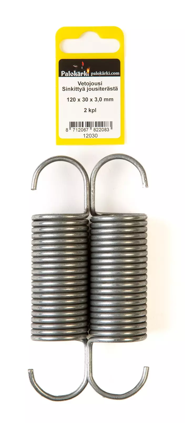 Jousiteräksestä valmistettu vetojousi on erinomainen valinta ammatti- ja harrastekohteisiin. Jousiteräksestä valmistettulla jousella on erinomainen jousivoima, tarkkuus ja palautuksen kesto. Kuormitettavuus on huippuluokkaa. Jousiteräksestä valmistettu jousi on vahva ja jämäkkä. Pituus 120 mm. Ulkohalkaisija 30 mm. Langan paksuus 3,0 mm. Materiaali sinkittyä jousiterästä. Kierrosmäärä 21. Voima 2,0 Kg/cm.