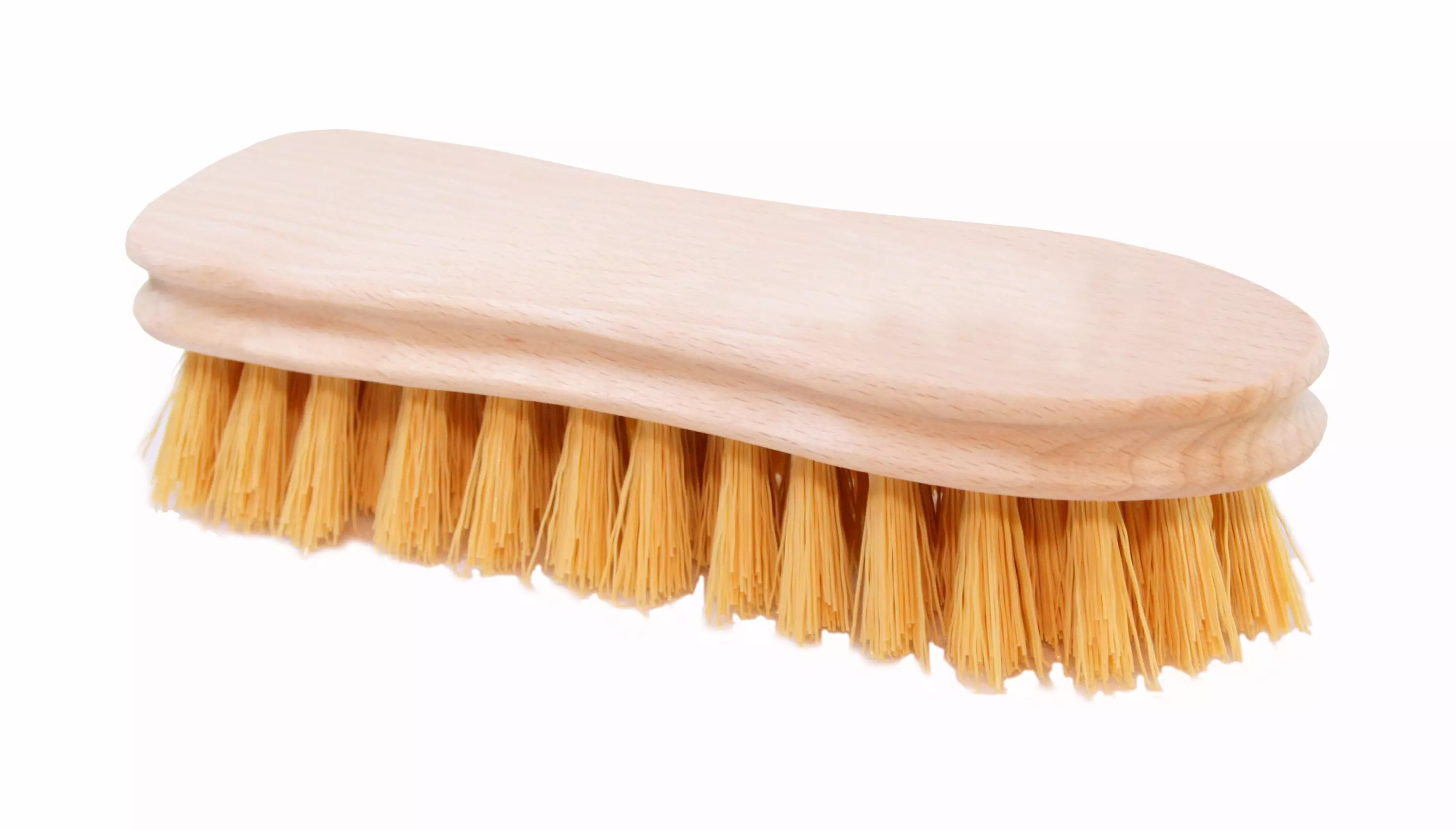 Aino kuurausharja on matonpesijän paras työkalu. Puinen runko pysyy muotoilunsa ansiosta tukevasti saippuaisissa käsissä. Harjan kuitu on keinokuitua. Valmistettu Suomessa.