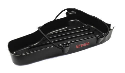 Kuminauhalla varustettu alusta sopii useimmalle moottorisahalle. Kuljetuskaukalo on vahvaa öljyn ja kolhun kestävää muovia, joka helpottaa moottorisahan kuljettamista.