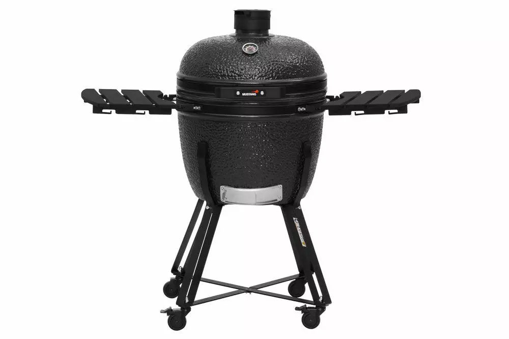 Keraaminen kamado 23,5" hiiligrilli pitkään grillaamiseen matalissä lämmöissä. Grillausritilä Ø 52 cm 304 ruostumattomasta teräksestä. Hiiliritilä valurautaa. Uusi Mullite keraaminen savi 1000 asteen lämmönkestolla. Uudenmallinen valurautainen pääliventtiili todella tarkkaan vedonsäätöön. Alaventtiili suojaverkolla, jonka kautta lisään ilmaa hiilille. Kannessa ja tulipesässä laadukas lasikuitutiiviste metalliverkolla. Pulverimaalattu vaunu, jossa 2 pientä ja 2 pientä lukittavaa rengasta. 2 kpl taittuvaa/irrotettavaa sivutasoa lämpökäsitellystä bambusta. Mustang logo kannen kahvassa. Sisältää keraamisen lämmönjakolevyn kolmella jalalla ja hiilihangon tuhkanpoistoon. Sopiva suojapeite 606696. 10 vuoden takuu. Tarkista takuuohjelma nettisivuilta.
