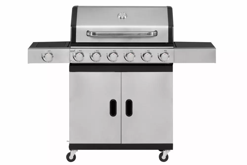 Kuuden polttimen kaasugrilli sivukeittimellä. Pääpolttimien teho 6 x 3,0 kW. Sivukeitin 3,2 kW. Kokonaisteho 21,2 kW. Polttimet valmistettu ruostumattomasta teräksestä. Grillausala 78 x 38 cm, joka on jaettu 2 kpl valurautaritilän 26 x 38 cm ja 1 kpl valurautaparilan 26 x 38 cm kesken. Ritilä ja parila mattaemaloitua valurautaa. Lämmitysritilä 74 x 13 cm, 430 ruostumattomasta teräksestä. Grillin tuplakansi 430 ruostumattomasta teräksestä, runko ja vaunu pulverimaalattua terästä. 4 kpl lämmönjakopeltejä aluminoitua peltiä. Rasvapelti grillin alla. Säilytyskaappi tarvikkeille. 2 pientä ja 2 lukittavaa pientä pyörää helpottavat grillin siirtelyä. Mustang lämpömittari. Sopiva suojapeite 602301 (ei sisälly). Takuu 2 vuotta.