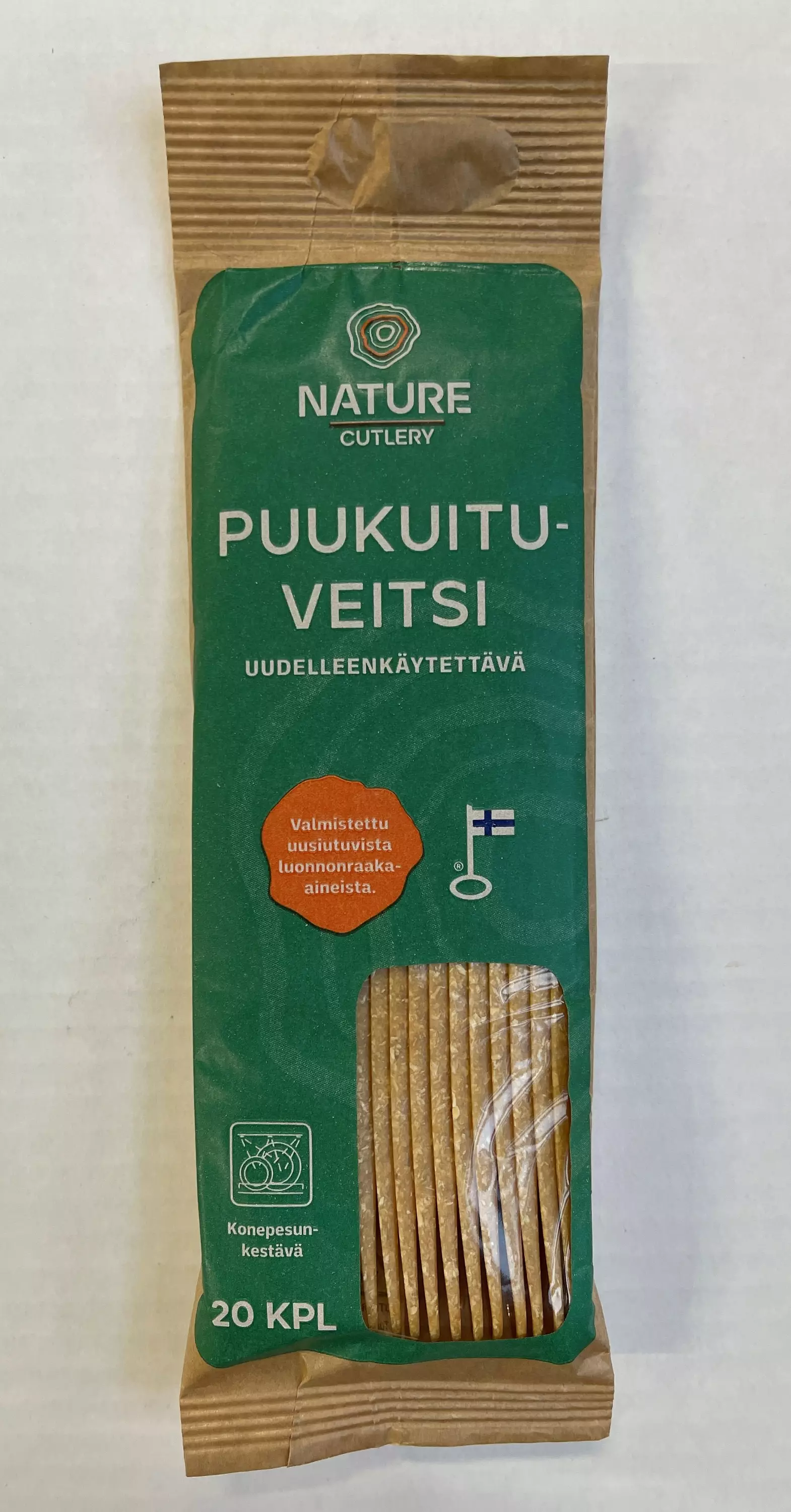 Avainsanat: puukuituveitsi, ekologinen veitsi, uudelleenkäytettävä, konepestävä, biohajoava, luonnonmateriaalit