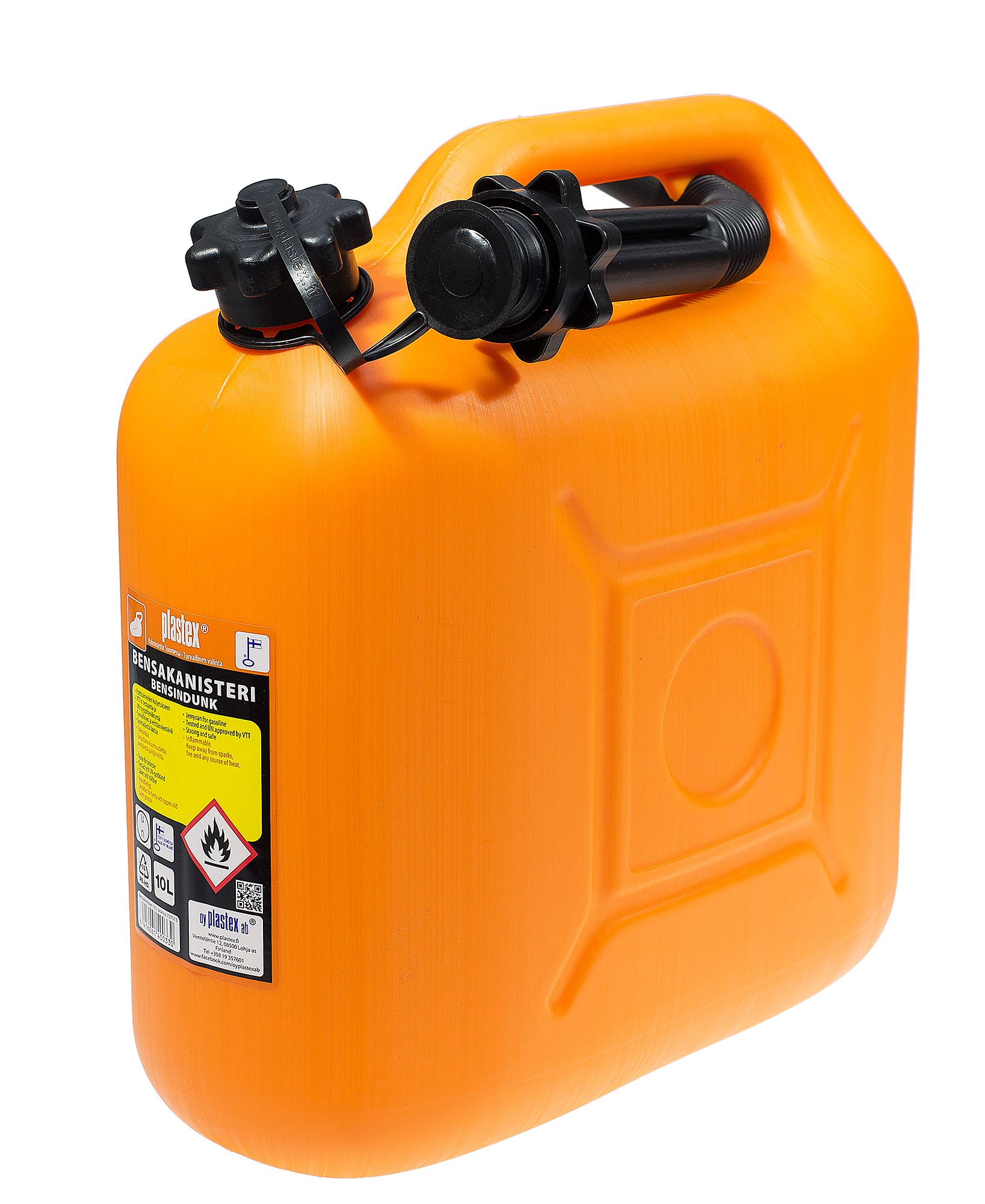 Suomalaista laatua! Plastexin turvalliset ja paksuseinäiset bensakanisterit on tehty kestämään kulutusta. UN-hyväksytyt kanisterit on testattu VTT:n vaativissa kokeissa ja jokainen kanisteri painetestataan vielä erikseen tehtaalla ennen pakkausta. Bensakanisterin mukana on kaatonokka, jonka avulla tankkaus onnistuu ilman roiskeita. Bensakanisterissa on kestävä korkki, jossa erillinen kuminen tiiviste. Bensakanisteri soveltuu hyvin mm. veneilyyn, moottorikelkkailuun ja auton ja kuorma-auton polttoaineen säilytykseen.