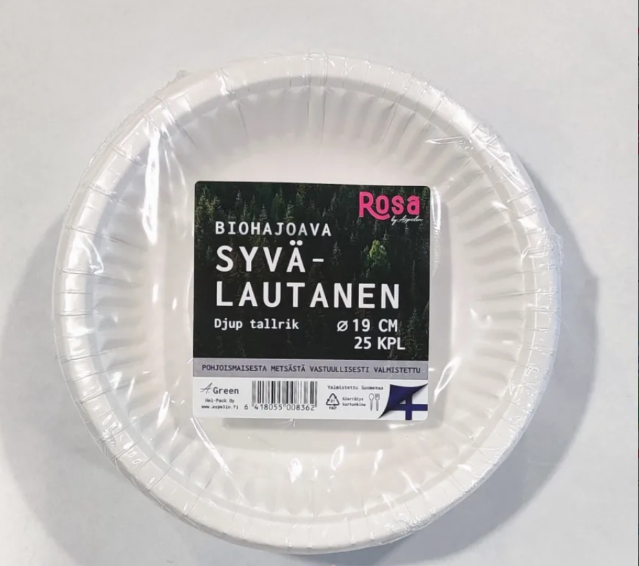 Avainsanat: kertakäyttölautanen, syvälautanen, biohajoava, kierrätettävä, kotimainen, kartonkilautanen