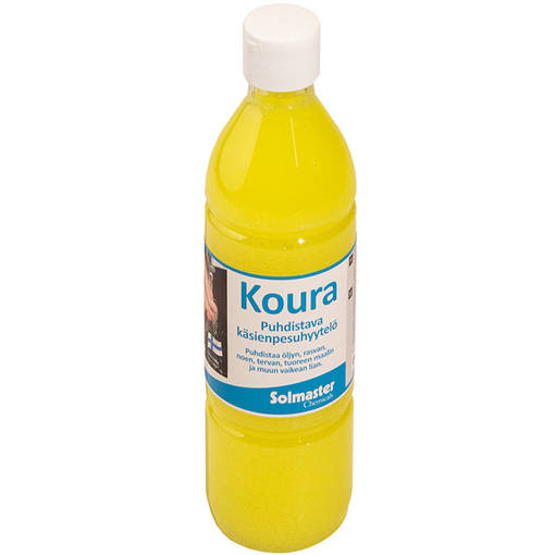 Solmaster Koura on hellävarainen ja riittoisa raikkaan sitruksen tuoksuinen käsienpesuhyytelö, joka puhdistaa tehokkaasti öljyn, rasvan, noen ja muun vaikean lian.