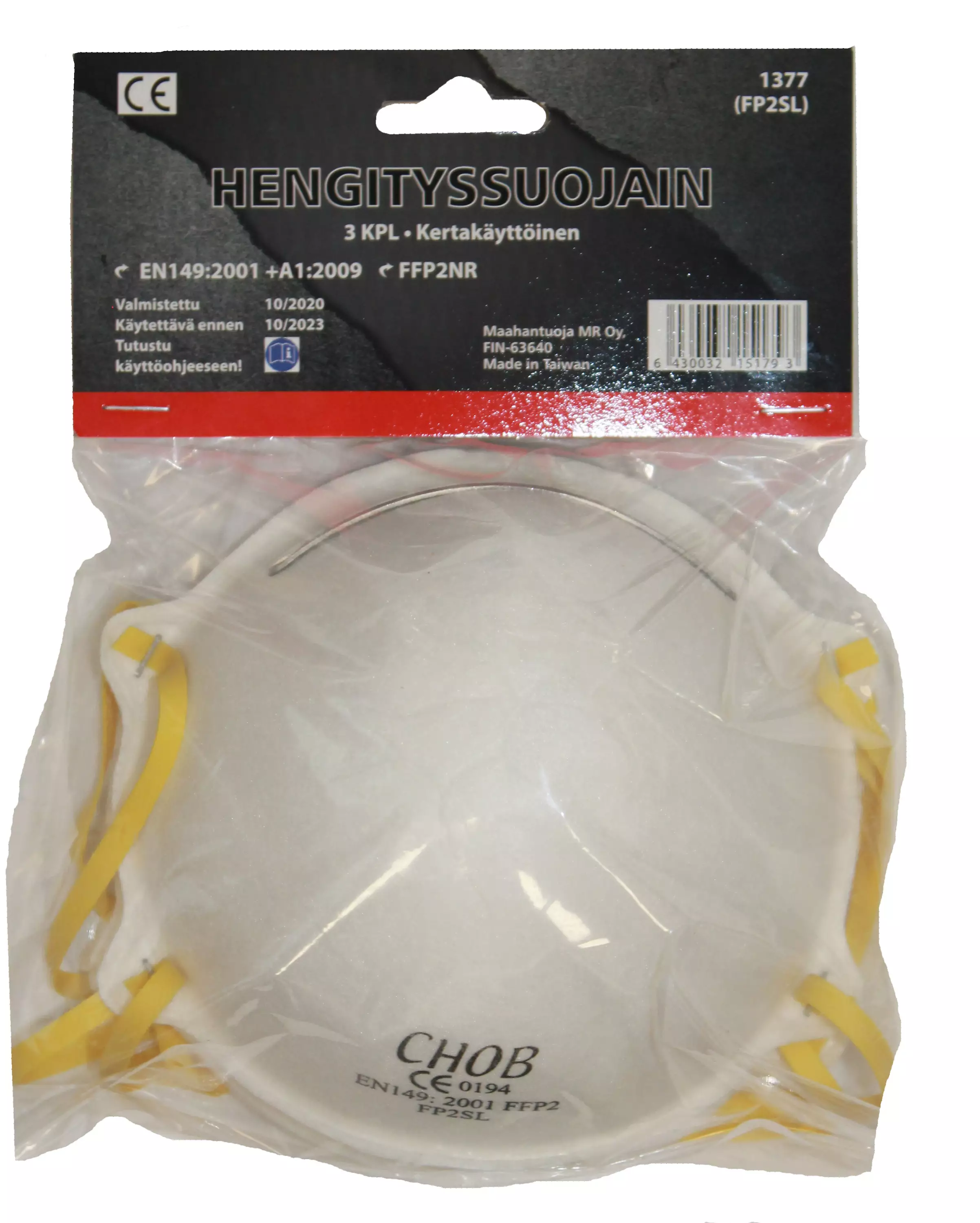 Hengityssuojaimet 3kpl - 3kpl/pkt kertakäyttöinen - EN 149:2001+A1:2009 - FFP2NR - CE 0194 hyväksytty