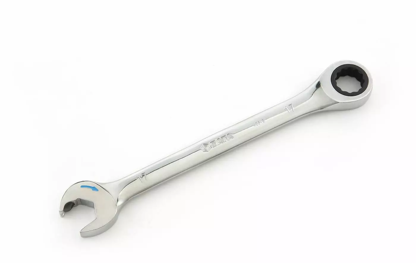 Patentoitu kiintolenkkiavain tuplaräikällä, nyt räikkäystoiminto myös kiintoavaimessa! n. 5-asteen räikkäystoiminto mahdollistaa kaikkien kiinnikkeiden löystämisen